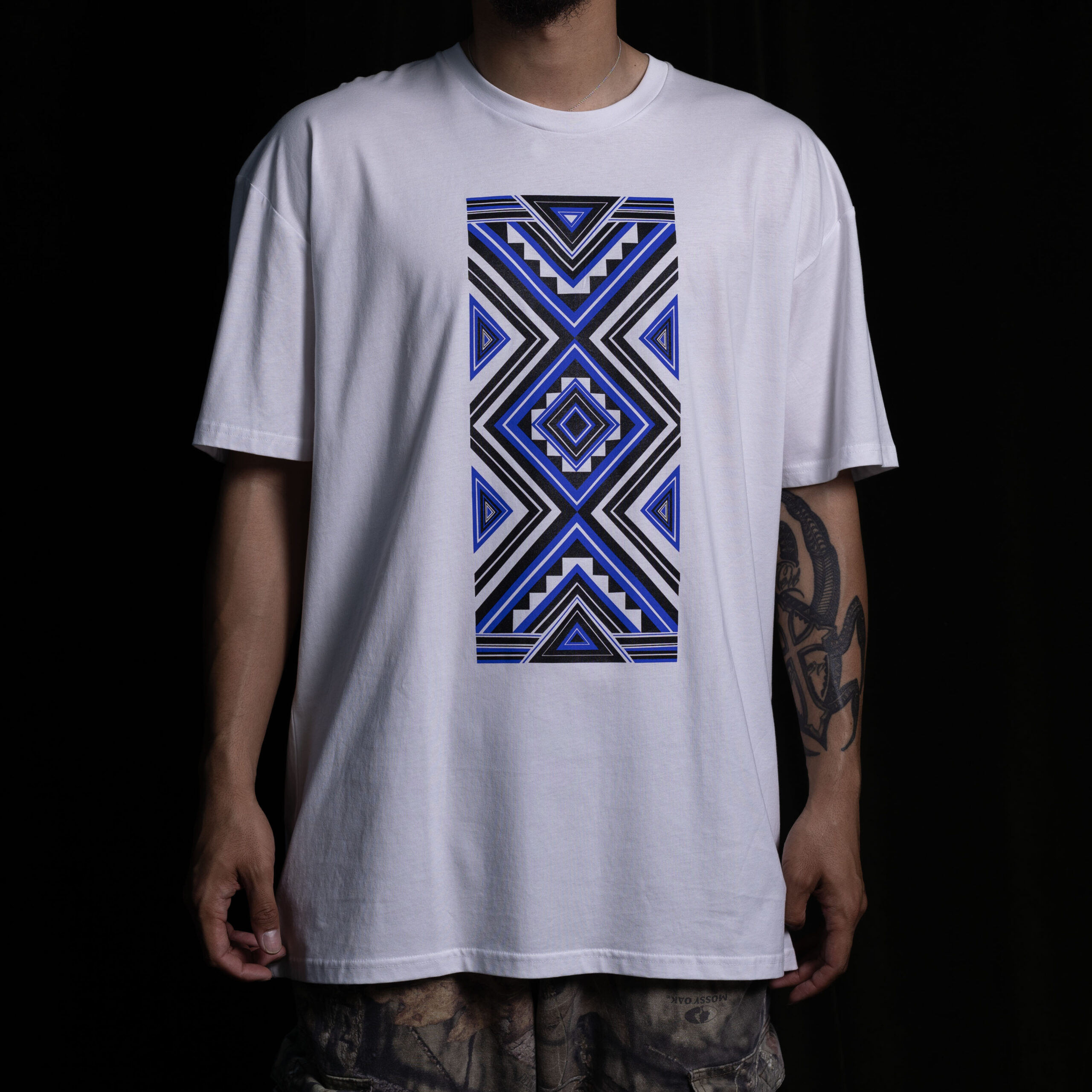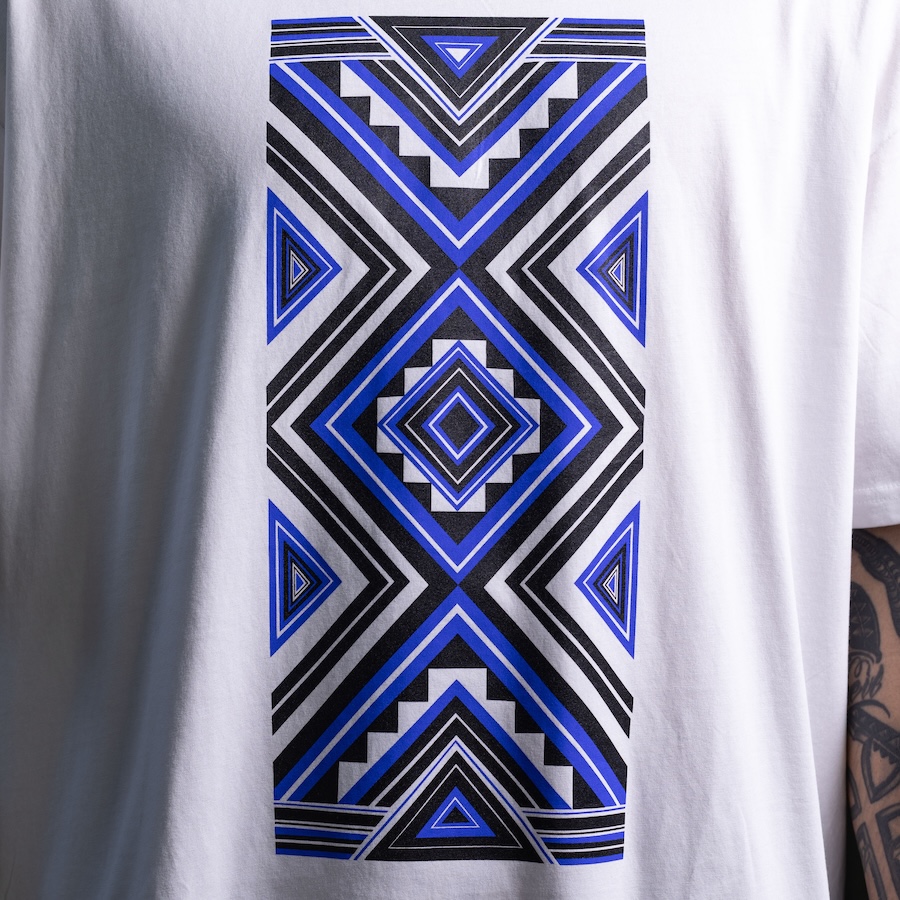 Combining Māori and Cook Island patterns and colours is Chani’s main visual focus. The tapatoru is the Māori tohu that influences her creations and the colours of the Cook Islands, is the fusion that makes her whole.