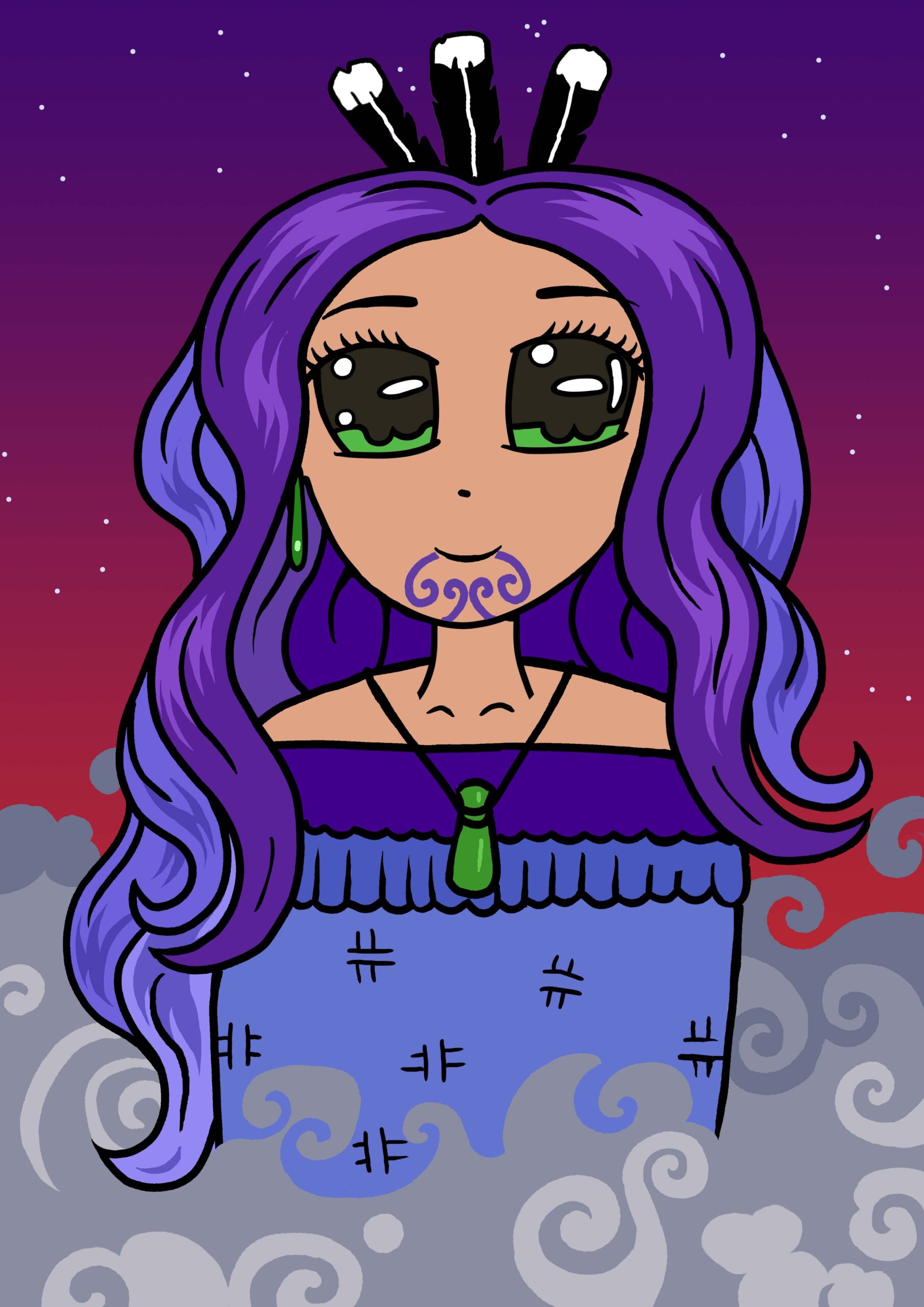 One of a series of Atua Wāhine (Māori Goddesses) Māori anime style. An ideal gift for children but suitable for people of all ages.