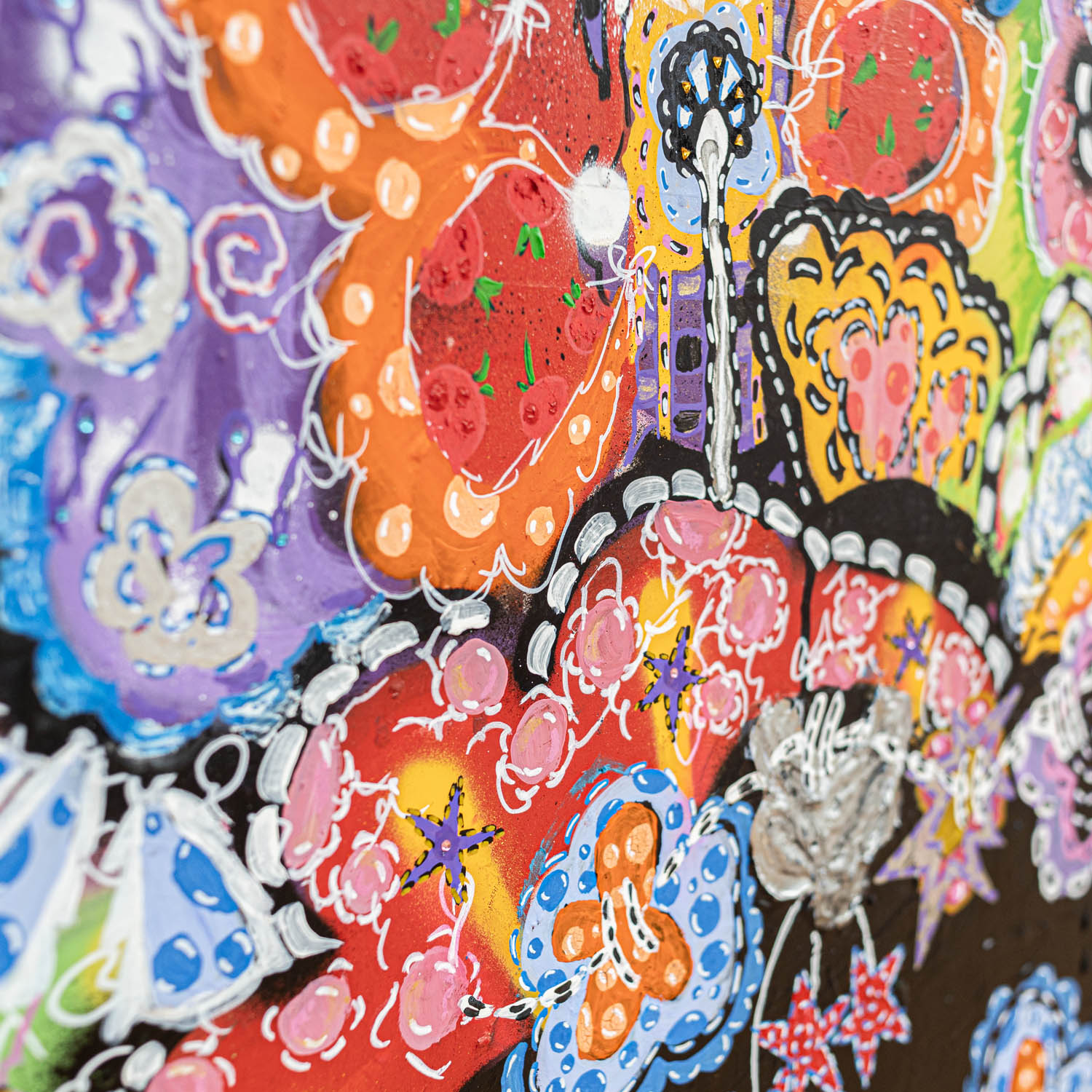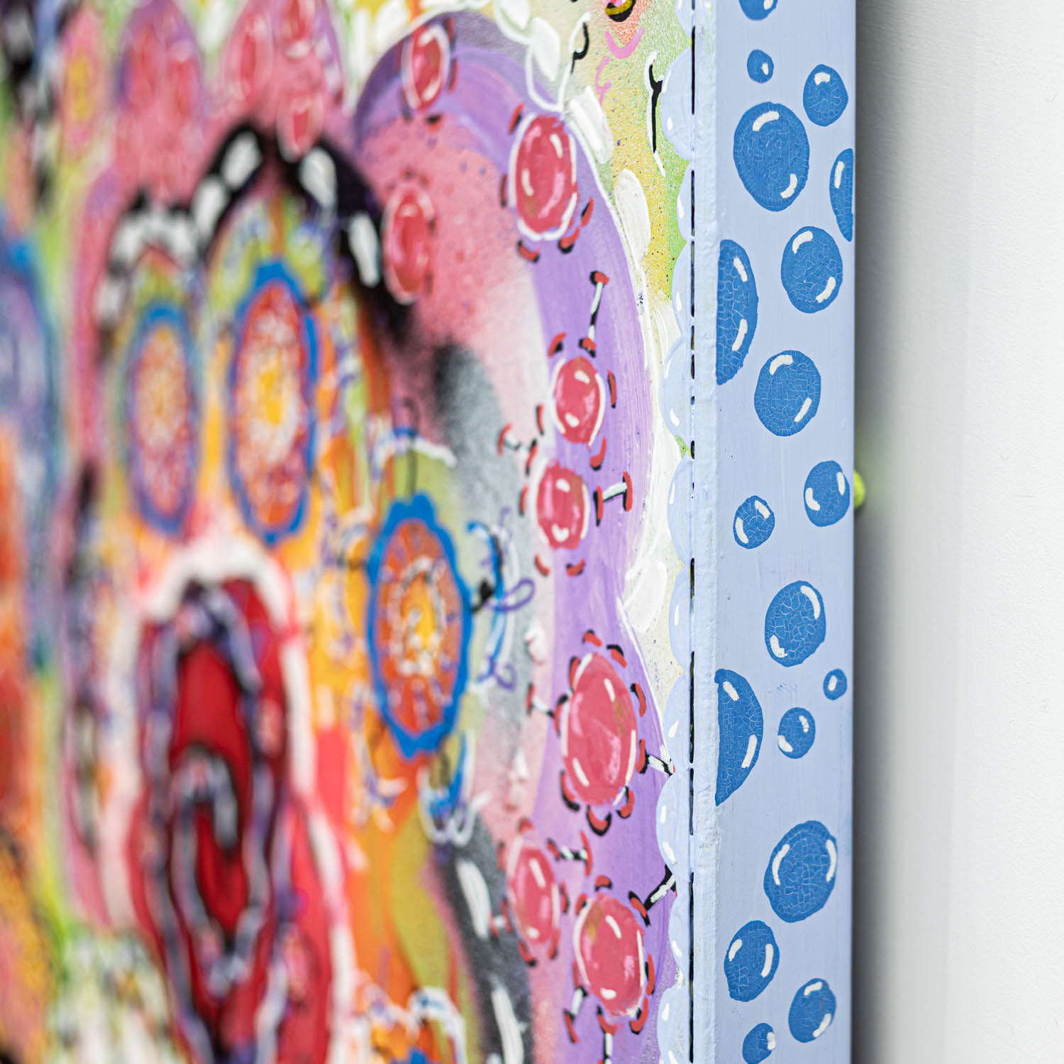 Annay views this piece as a window into the everyday emotional journey we all take. Hubba Bubbles, the wheku, becomes a playful yet powerful expression of these inner states. Its features embody layers of emotion stretching from delight and anticipation to uncertainty and vulnerability.