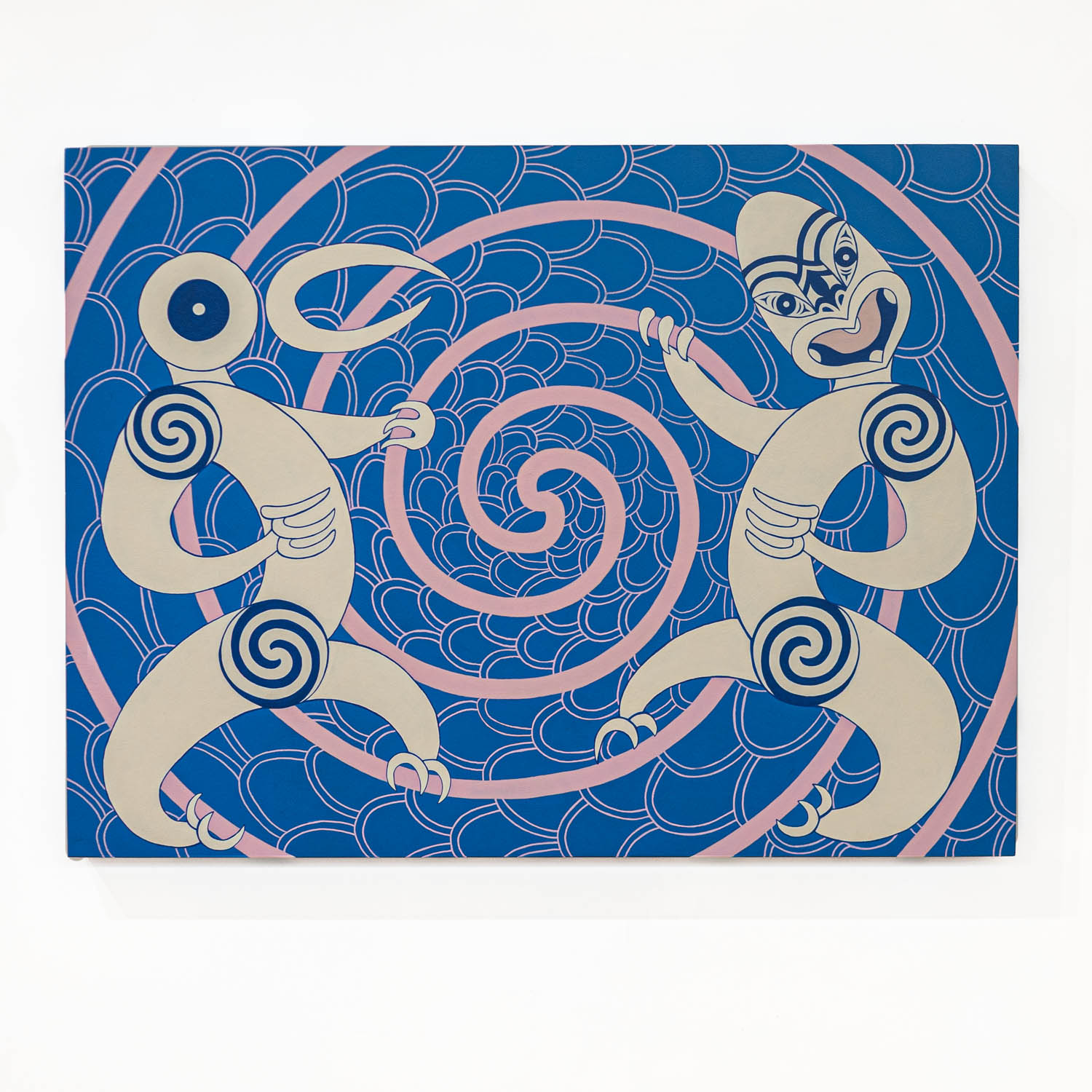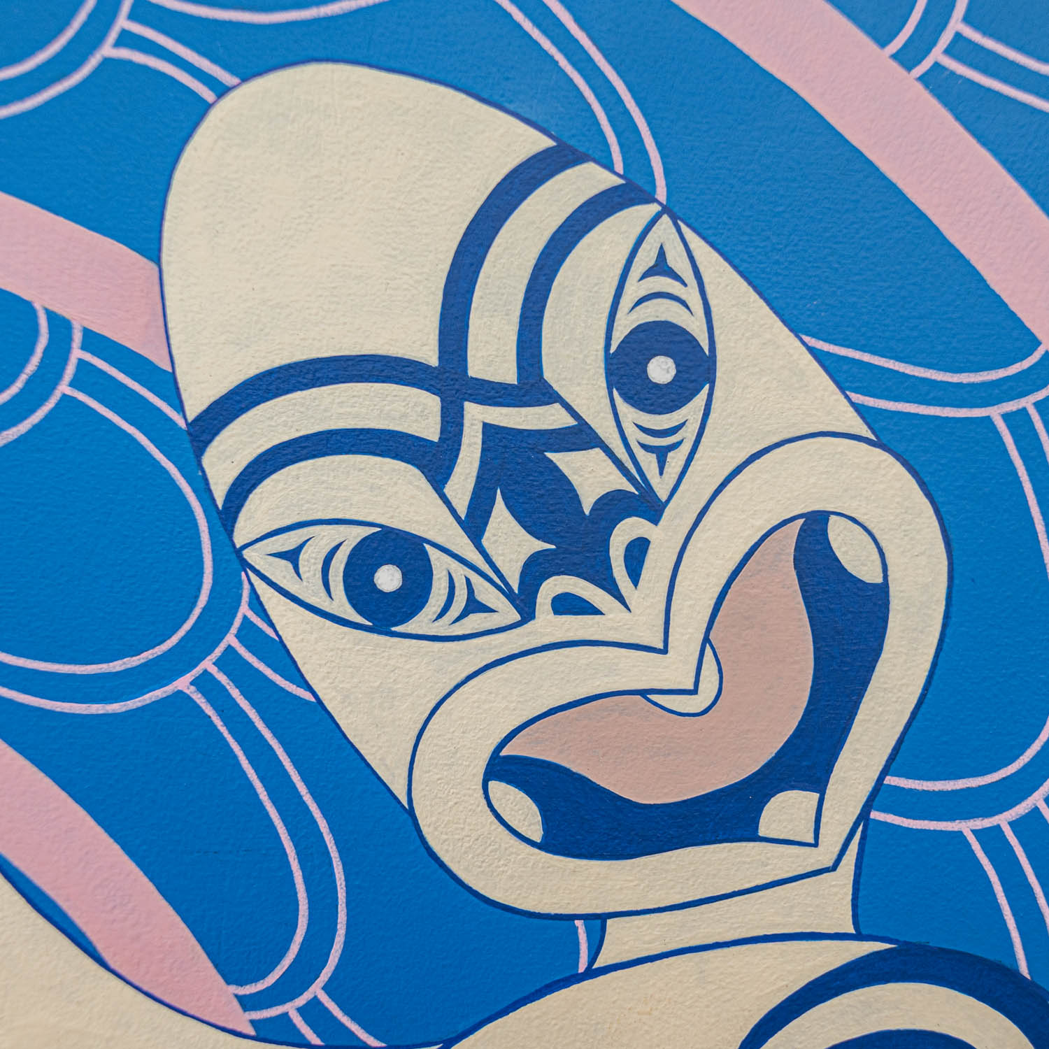 "Through multidisciplinary mahi toi, I explore themes around Ātua Māori, pūrākau, and Māori cosmologies through the interwoven mediums of painting, raranga, and tā moko. I reinterpret this knowledge with a contemporary approach, paying tribute to our Tūpuna by exploring traditional forms, mediums and stories. My goal is to honour them, the stories and knowledge they have passed down to us."