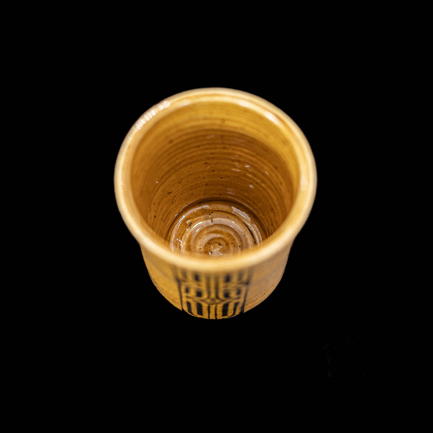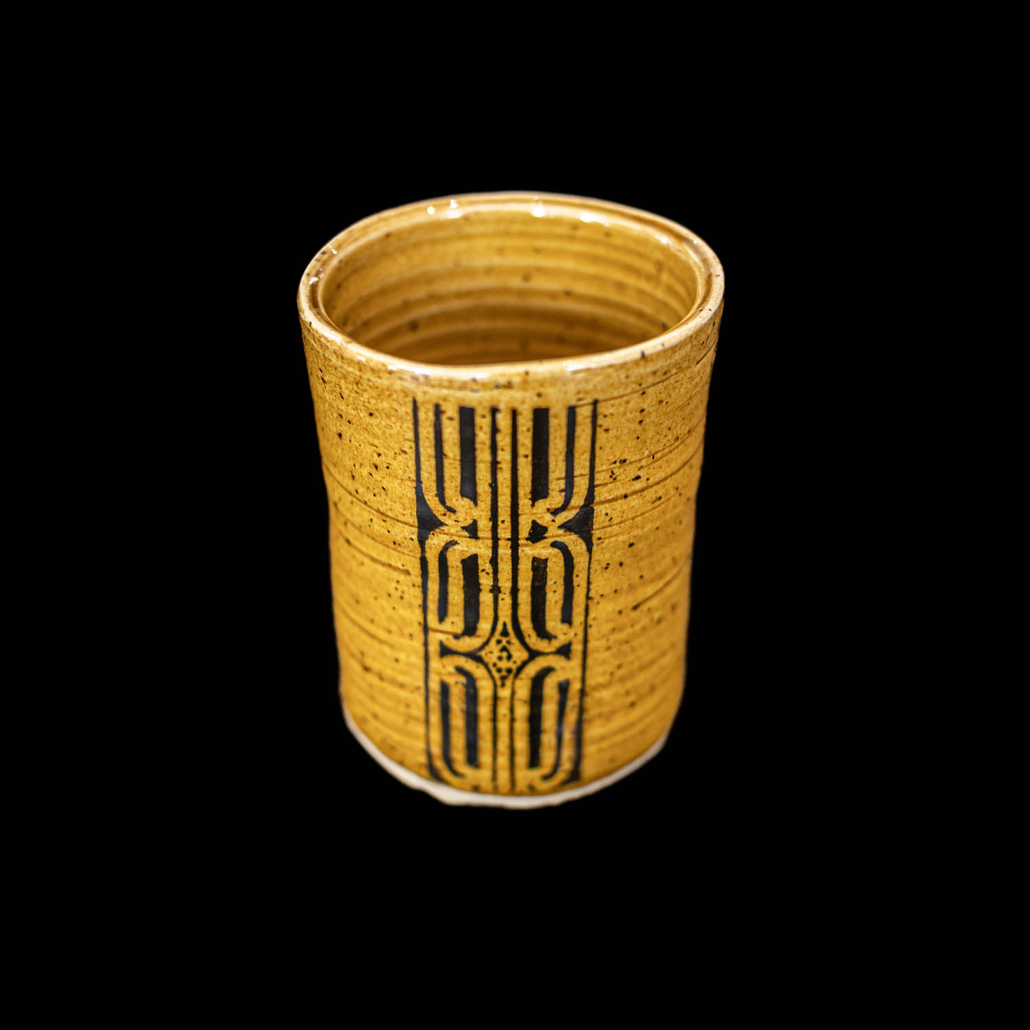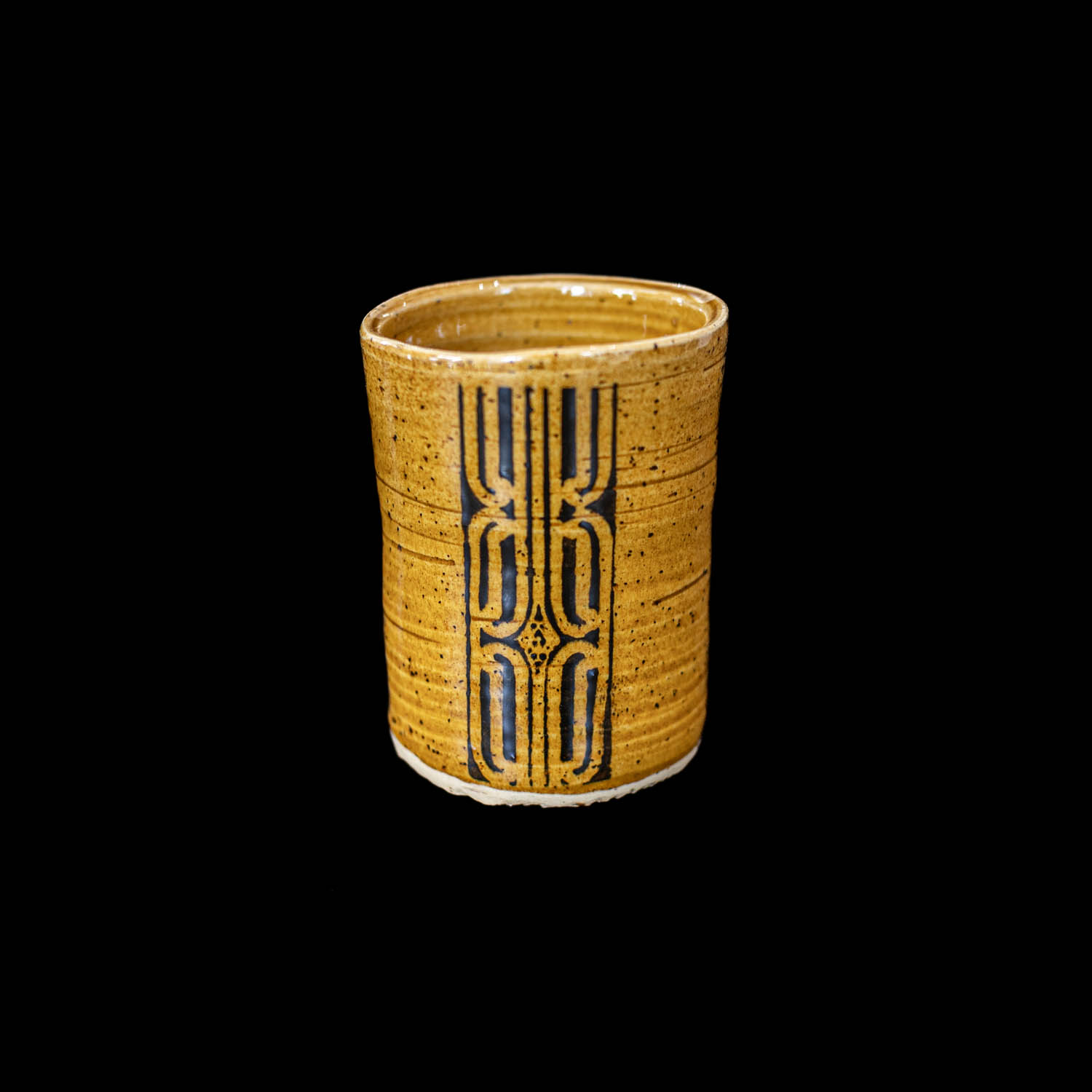 Materials: Speckled clay, black underglaze, Crocus Martis glaze