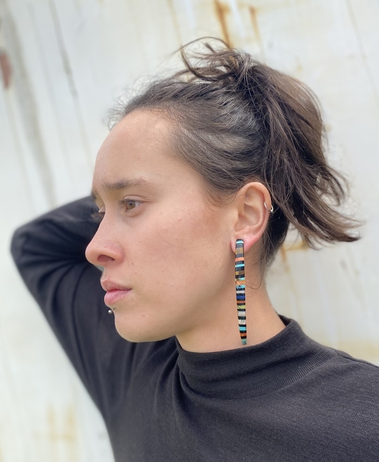 Materials: Obsidian, Spiny Oyster Shell, Mother of Pearl, Turquoise, stone compounds