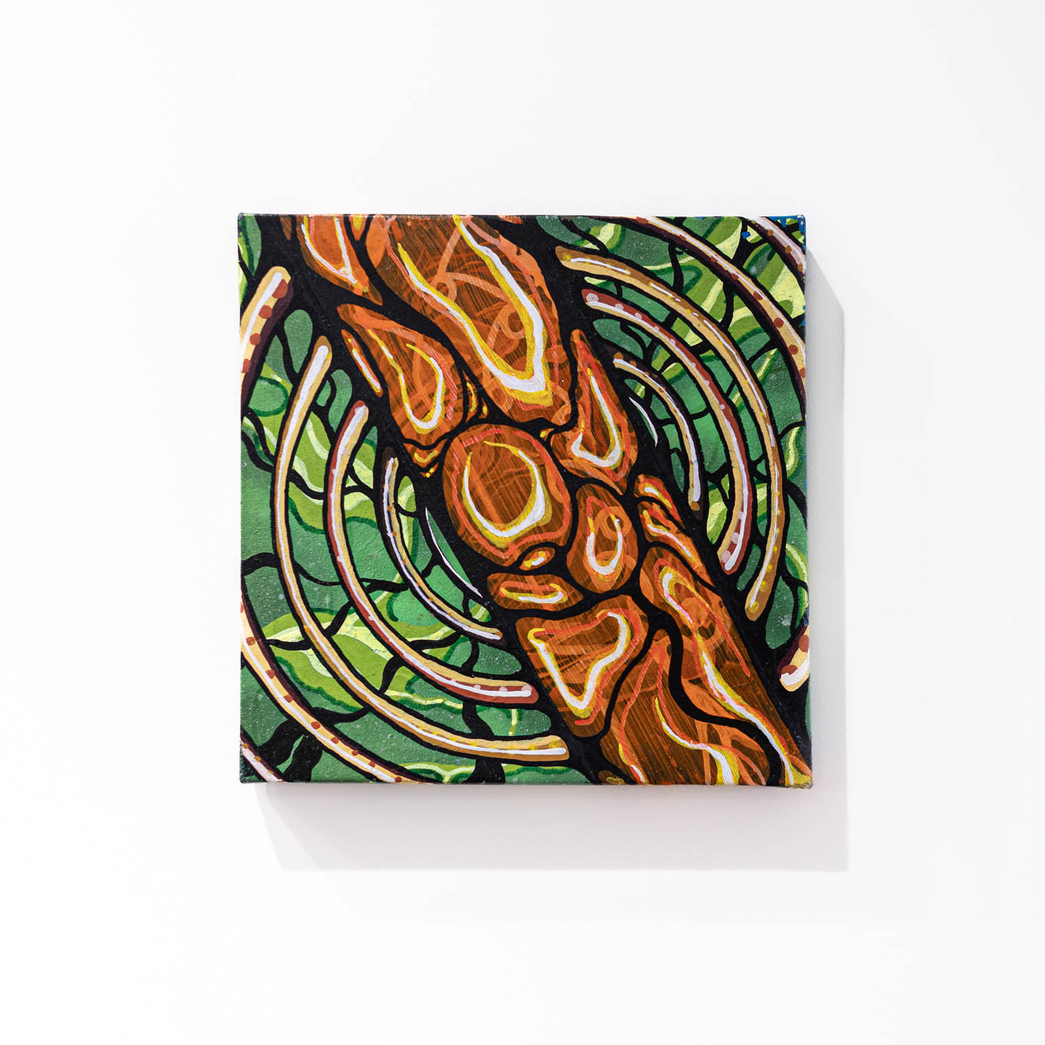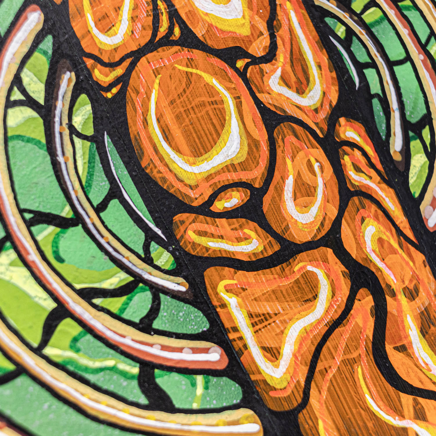 Description: Custom spray paint, paint pen, acrylic on canvas.