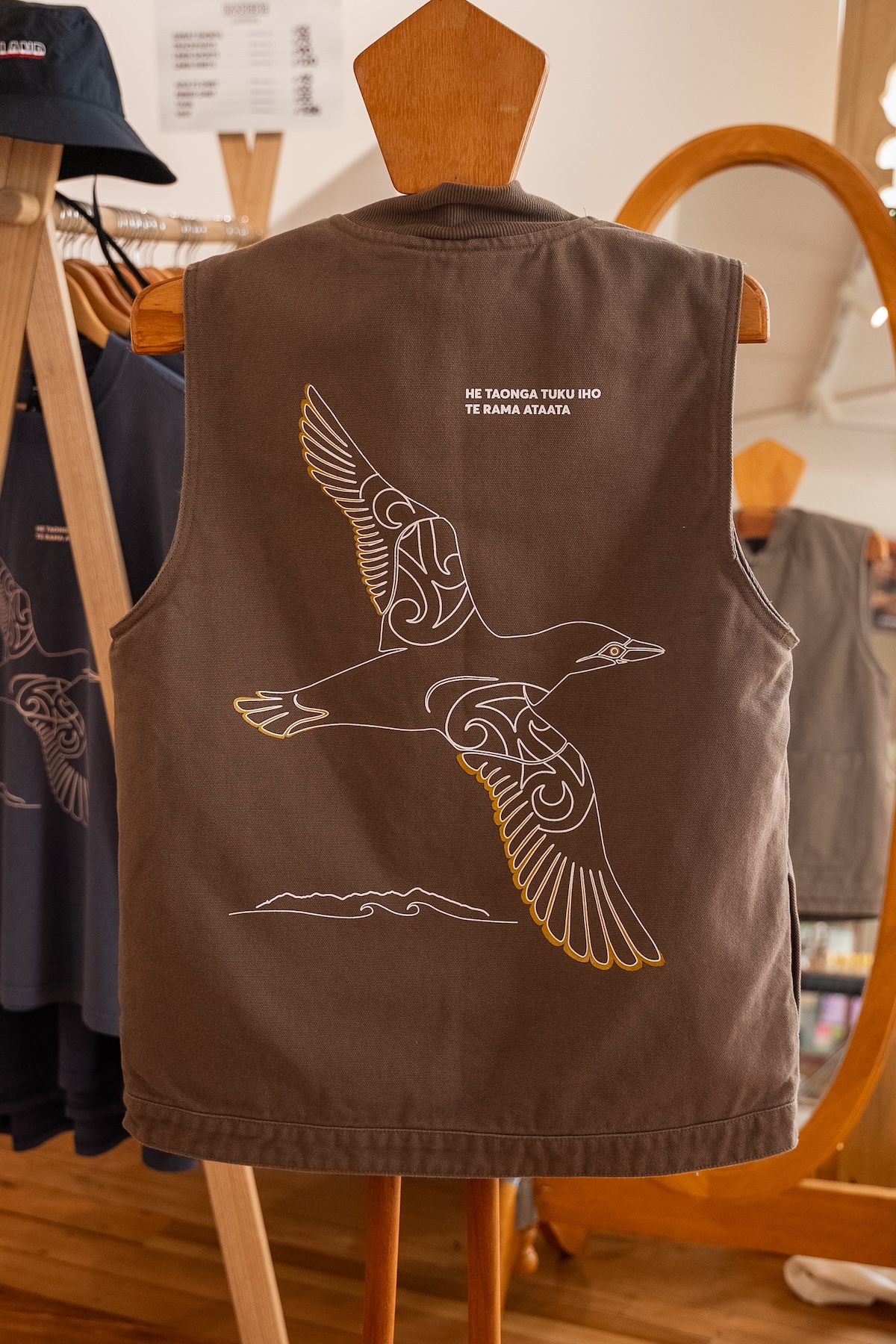 The artwork for this years festival was created by Lucy de Young Hakaraia. It features a takapū – a gannet – soaring across the moana.