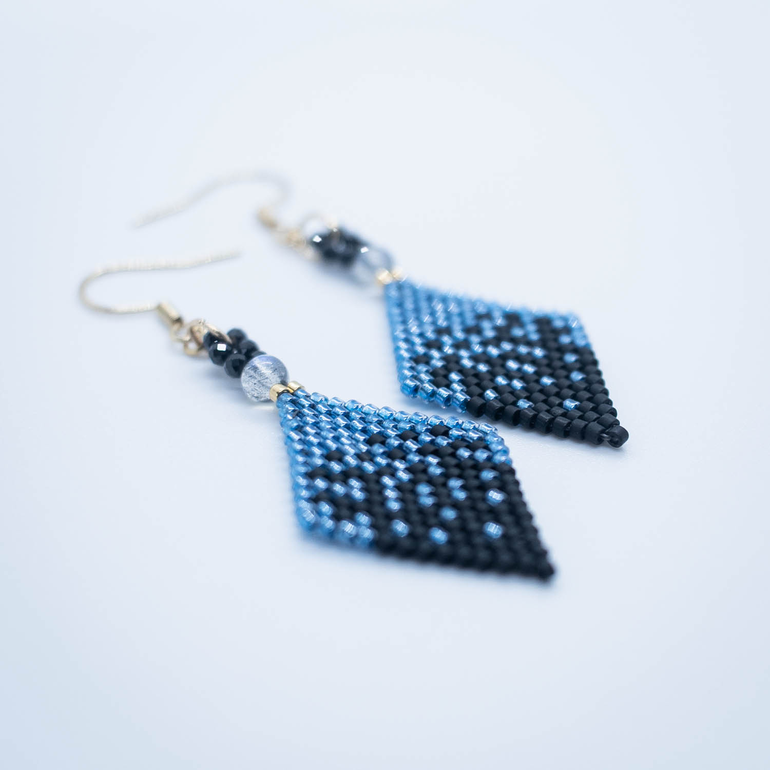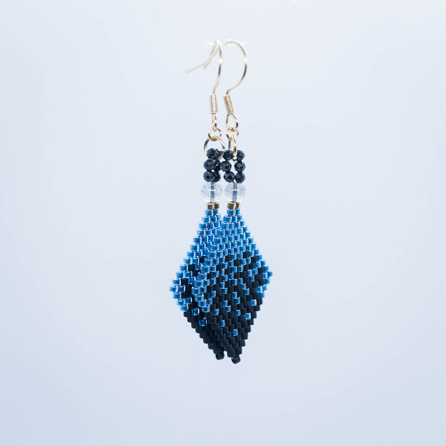 Materials: Stainless steel jewellery findings, Miyuki (Japanese glass beads) 24kt gold glass plated, Black, Blue, Black Faceted Spinel Stone, Labradorite stone.