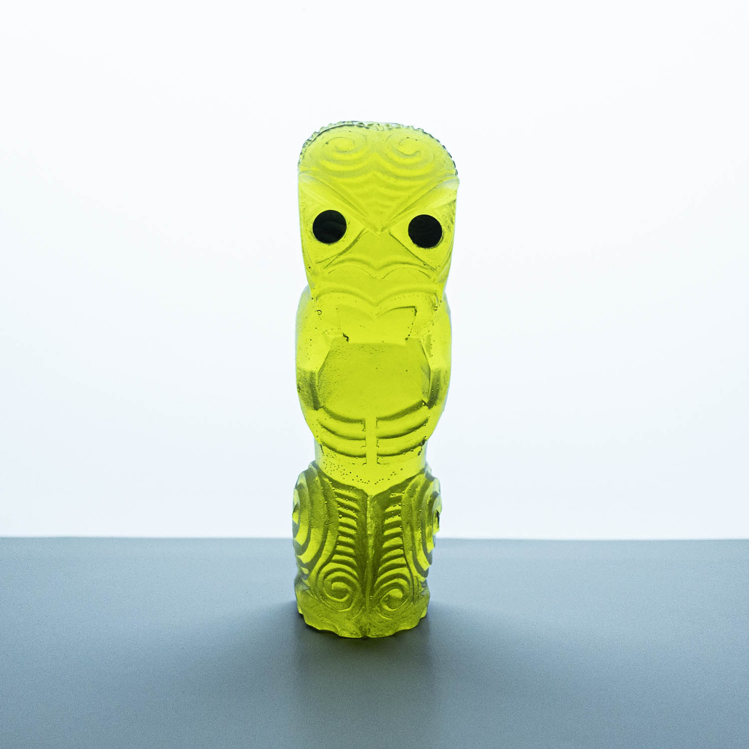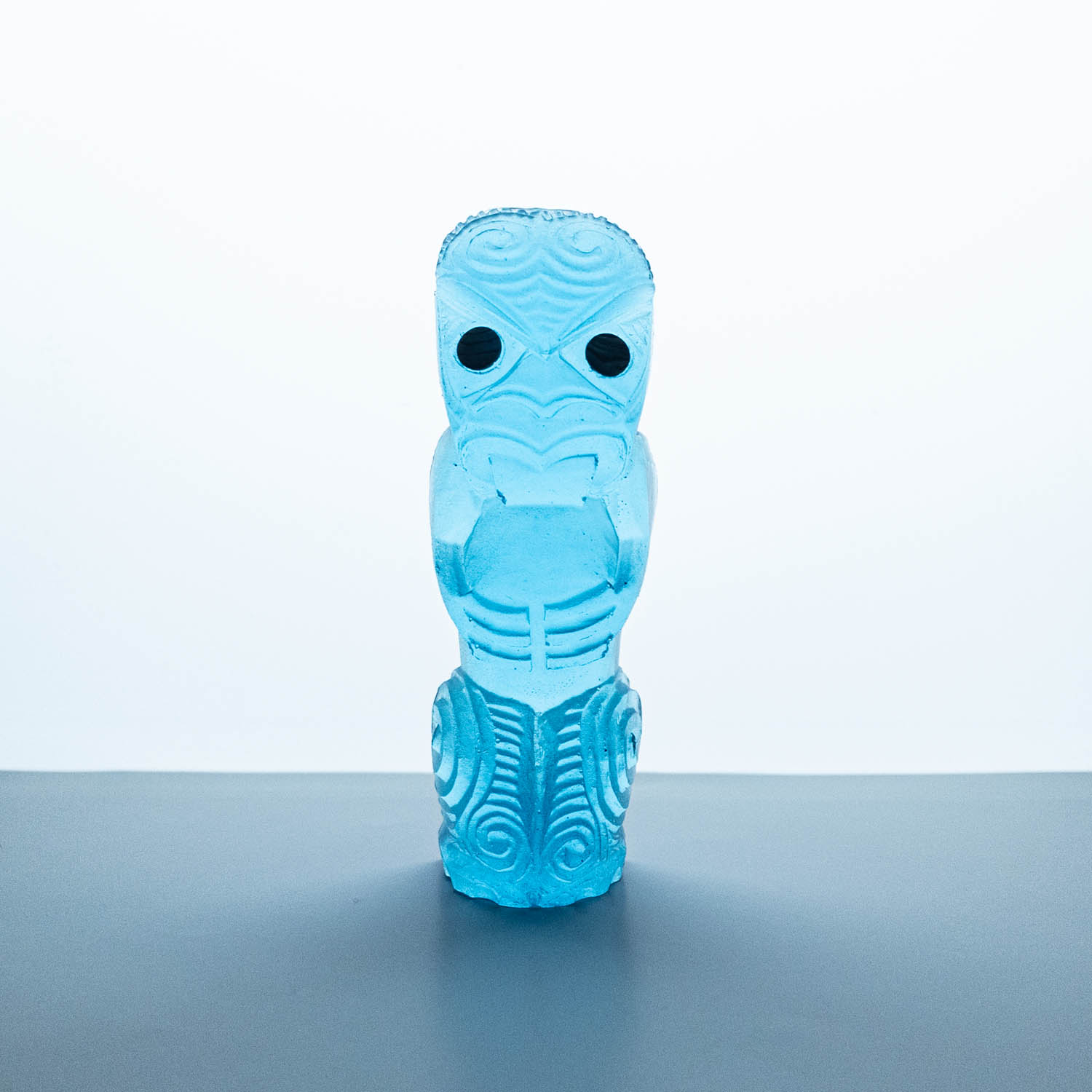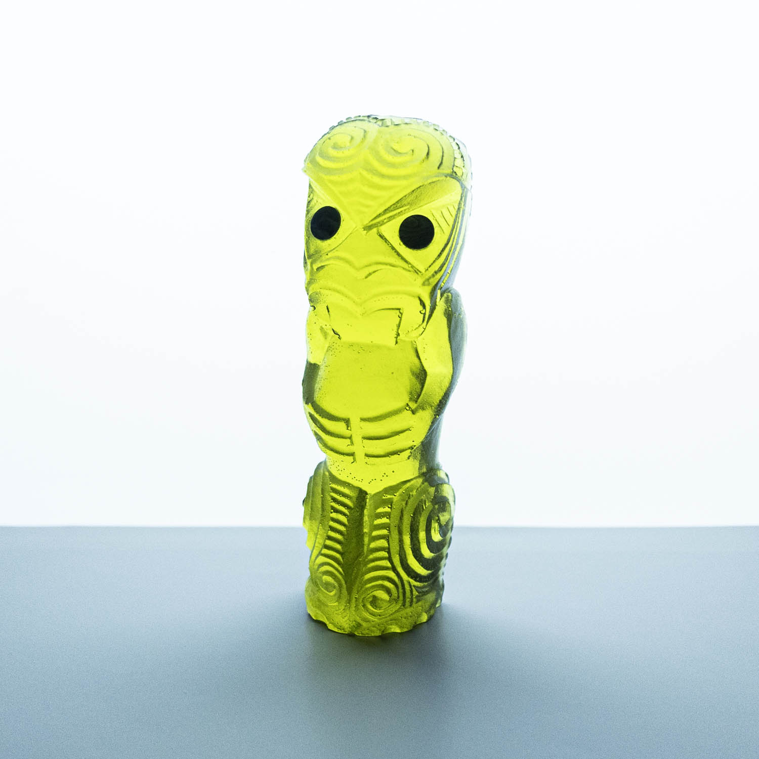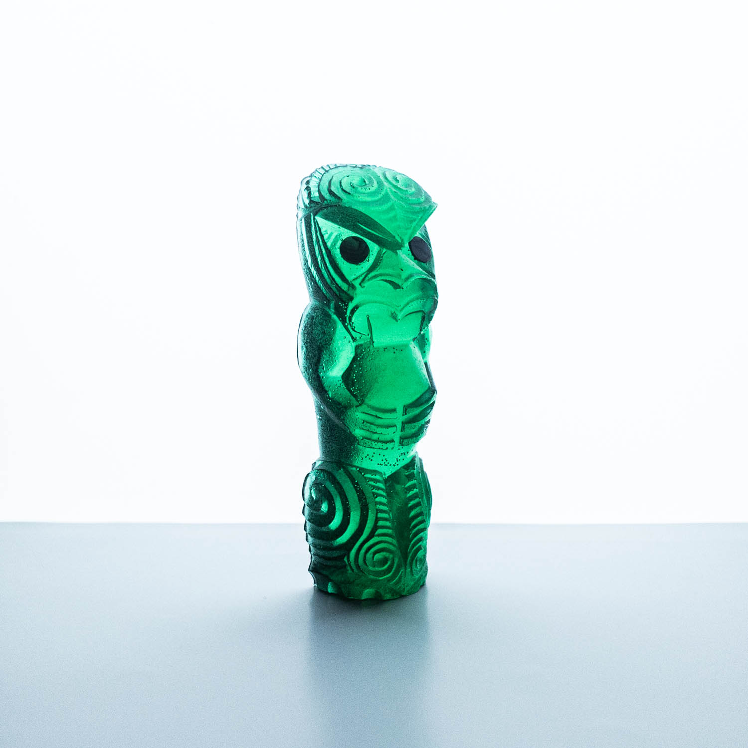 Messini Palace is a self-taught, experimental artist working primarily with resin and plaster. She is a self-sustainable practitioner who creates custom pieces from her studio in central Auckland. After living abroad for a long period, her decision to return home and pursue her art practice aided in her reconnection and reclamation of identity as a wāhine Māori. Some of her projects are collaborations with carver Mike Matchitt- while Matchitt carves into the original blueprint mould, Messini casts resin sculptures from the carved moulds to create a final piece. A selection of Messini’s sculptures is inspired by souvenir pieces of the mid-century era, such as the tiki. This is her way of counter-critiquing trinkets sold to tourists, reclaiming the narrative of taonga tuku iho. Messini’s greatest influence is her whakapapa; many of her pieces represent important tūpuna or kaitiaki.