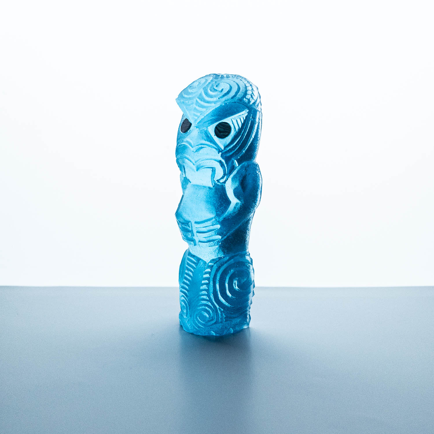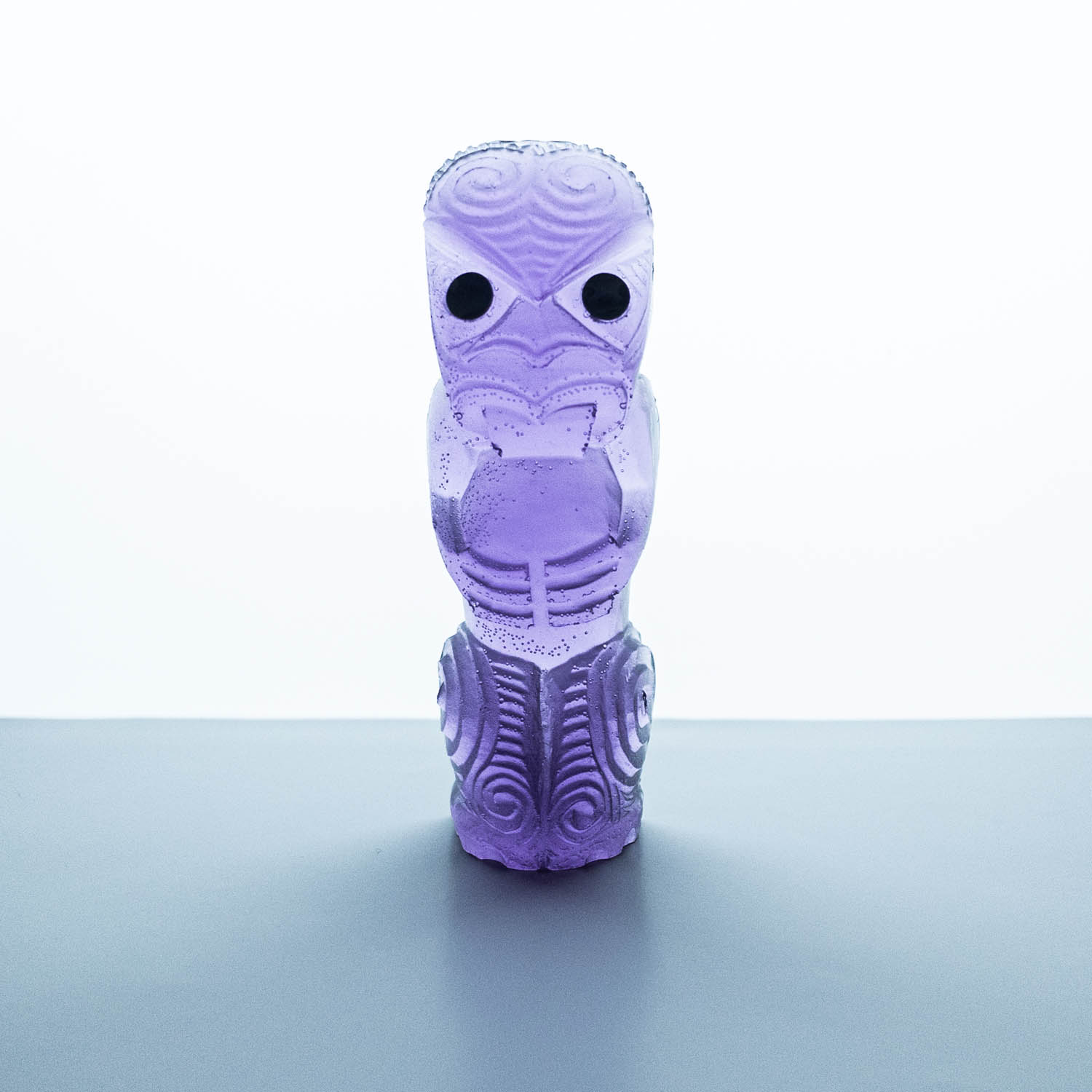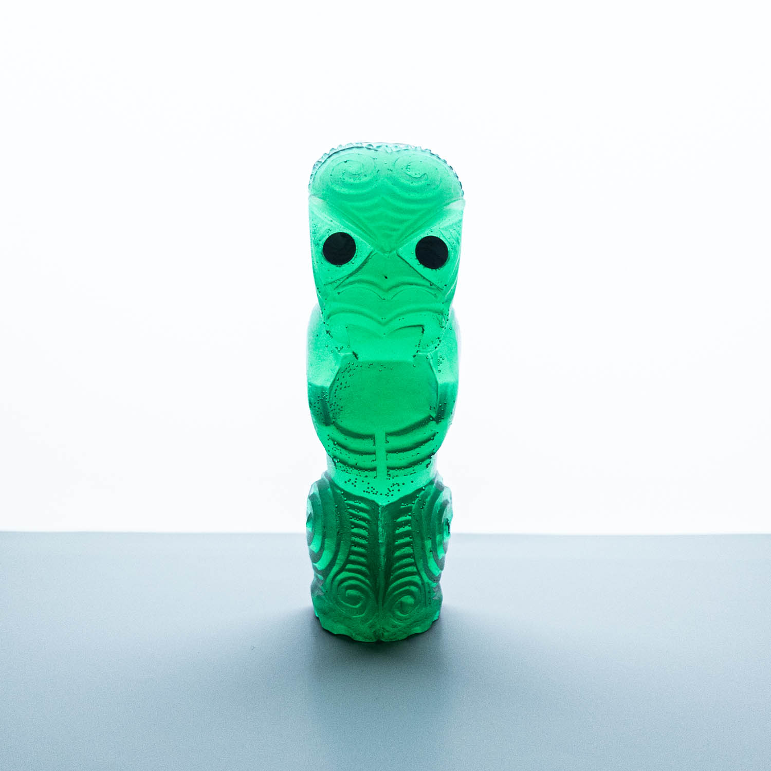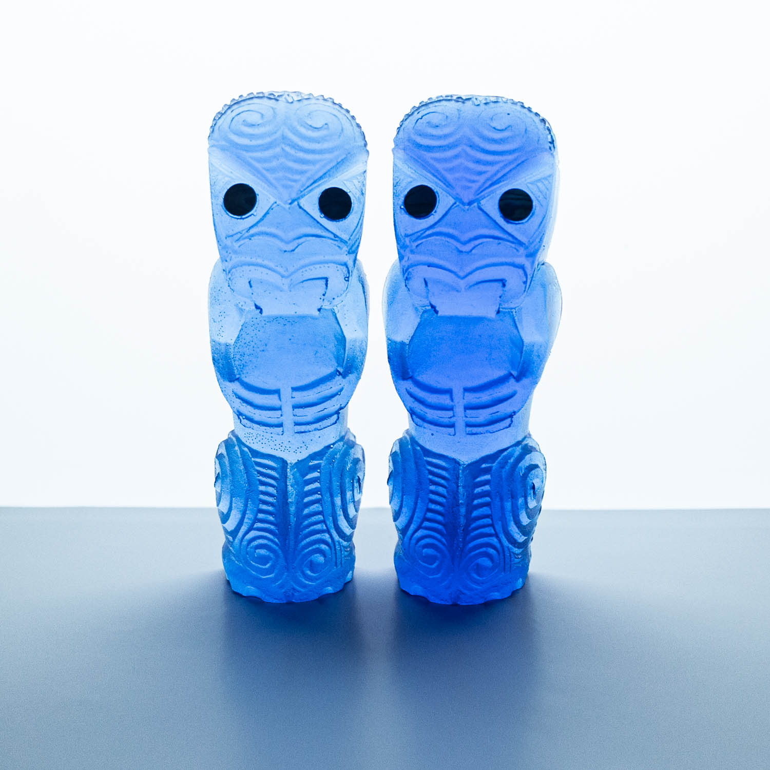 Messini Palace is a self-taught, experimental artist working primarily with resin and plaster. She is a self-sustainable practitioner who creates custom pieces from her studio in central Auckland. After living abroad for a long period, her decision to return home and pursue her art practice aided in her reconnection and reclamation of identity as a wāhine Māori. Some of her projects are collaborations with carver Mike Matchitt- while Matchitt carves into the original blueprint mould, Messini casts resin sculptures from the carved moulds to create a final piece. A selection of Messini’s sculptures is inspired by souvenir pieces of the mid-century era, such as the tiki. This is her way of counter-critiquing trinkets sold to tourists, reclaiming the narrative of taonga tuku iho. Messini’s greatest influence is her whakapapa; many of her pieces represent important tūpuna or kaitiaki.