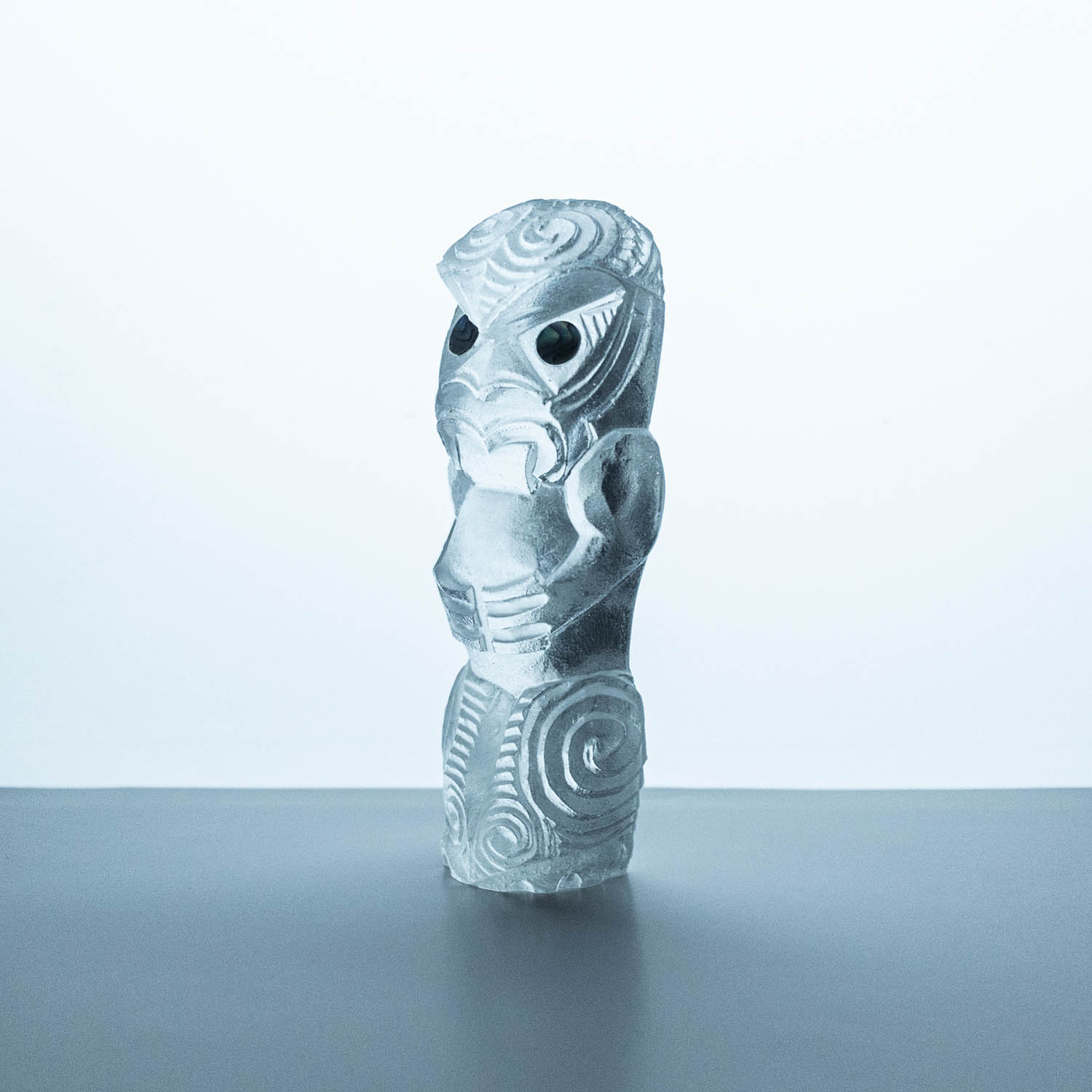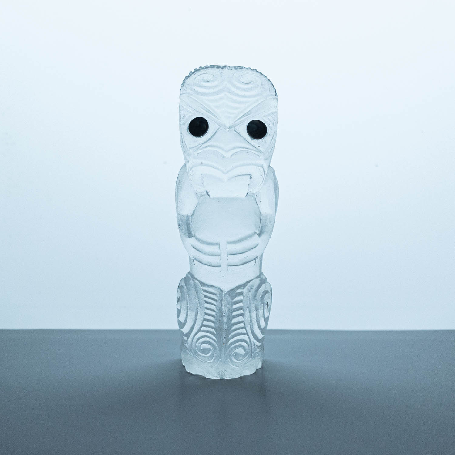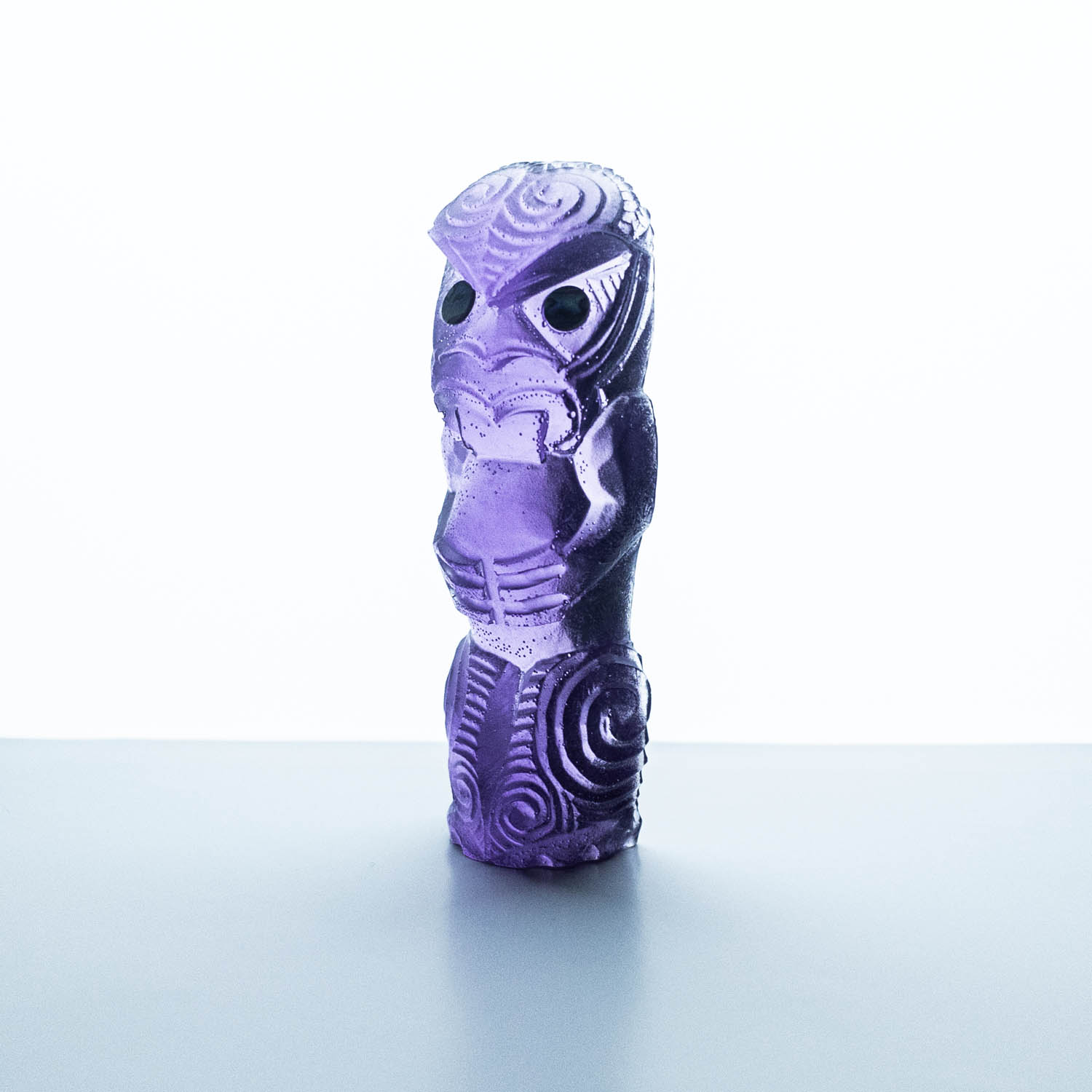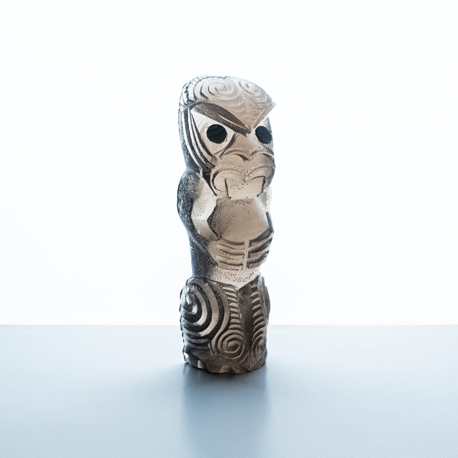 Messini Palace is a self-taught, experimental artist working primarily with resin and plaster. She is a self-sustainable practitioner who creates custom pieces from her studio in central Auckland. After living abroad for a long period, her decision to return home and pursue her art practice aided in her reconnection and reclamation of identity as a wāhine Māori. Some of her projects are collaborations with carver Mike Matchitt- while Matchitt carves into the original blueprint mould, Messini casts resin sculptures from the carved moulds to create a final piece. A selection of Messini’s sculptures is inspired by souvenir pieces of the mid-century era, such as the tiki. This is her way of counter-critiquing trinkets sold to tourists, reclaiming the narrative of taonga tuku iho. Messini’s greatest influence is her whakapapa; many of her pieces represent important tūpuna or kaitiaki.