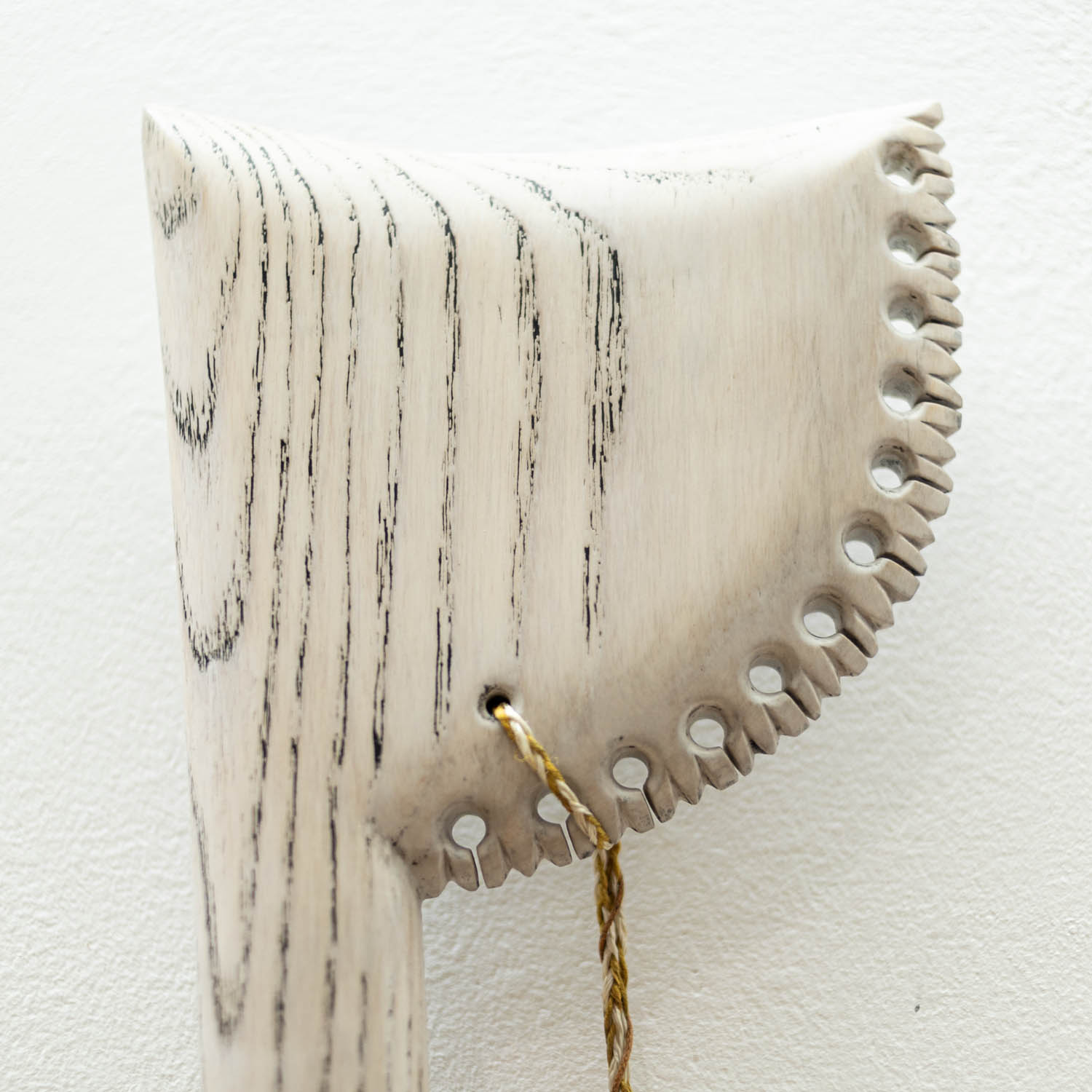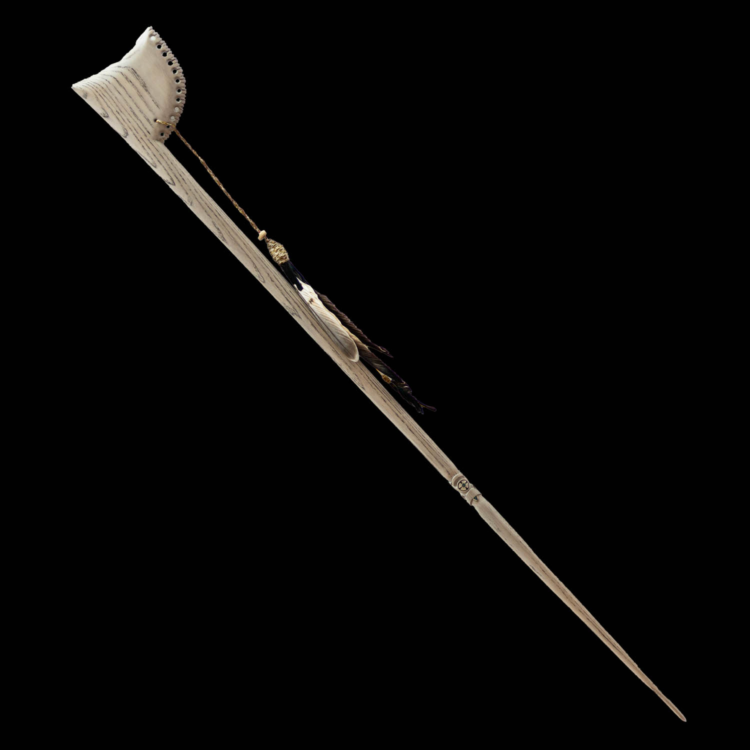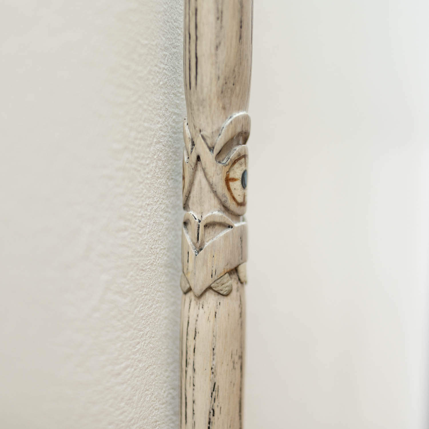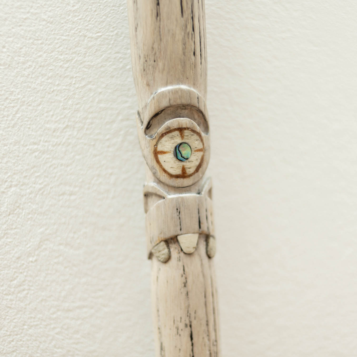 Made from American Swamp Ash Wood. This wood is light in colour, almost white, and was used to replicate the appearance of Tohorā (whalebone). These pieces are inspired by traditional whalebone Tewhatewha.