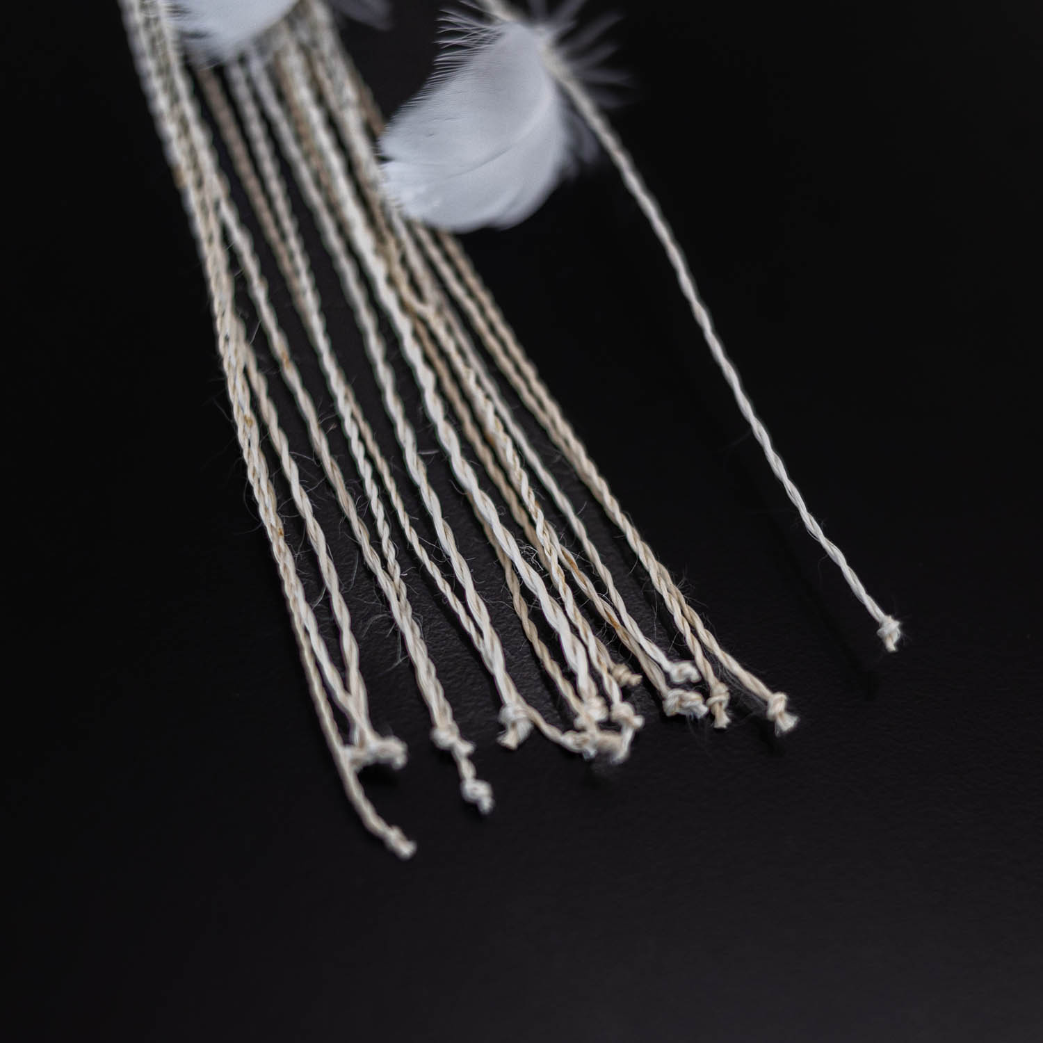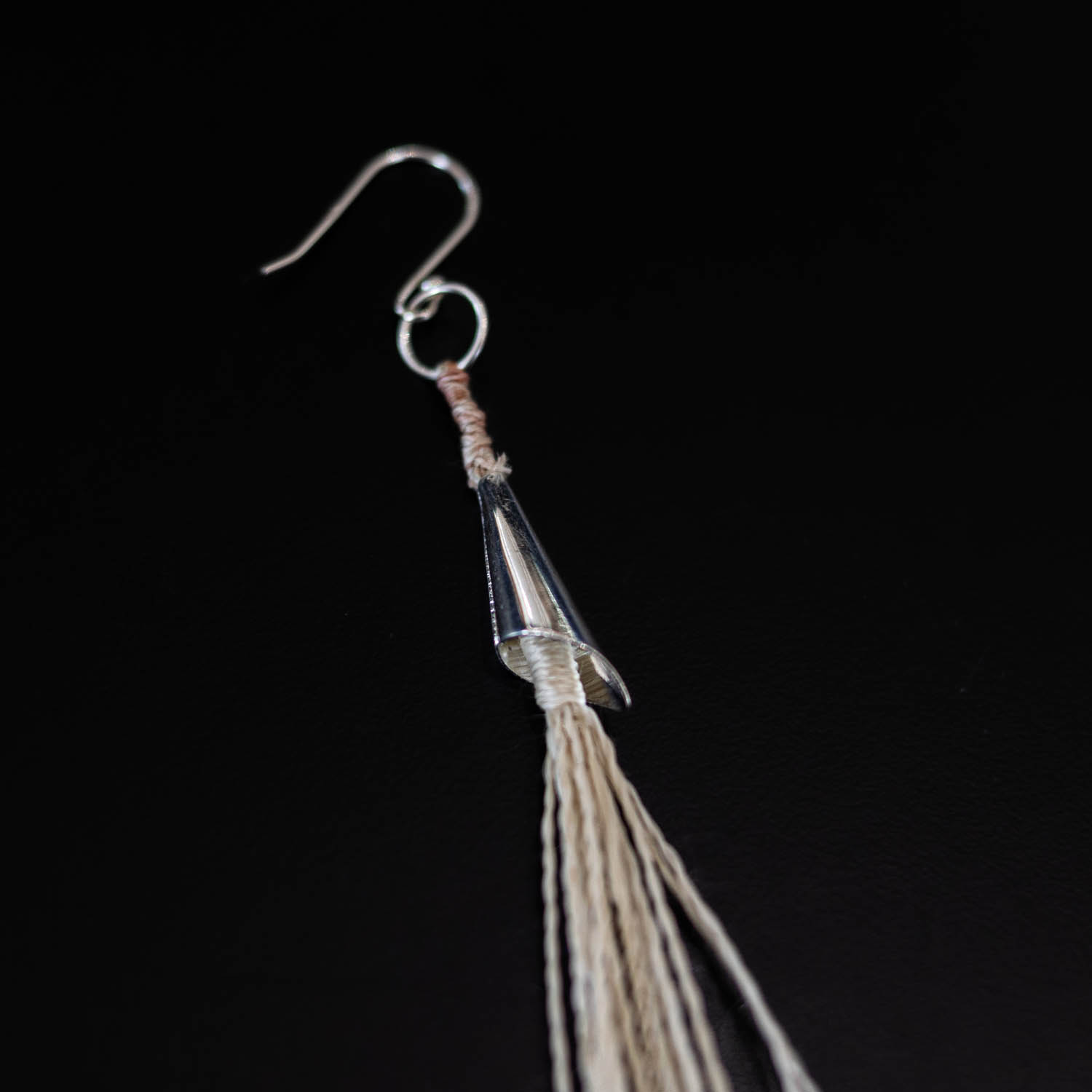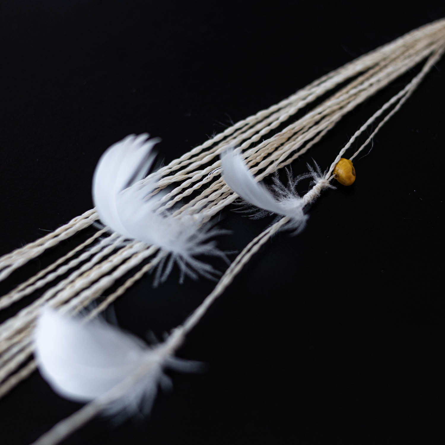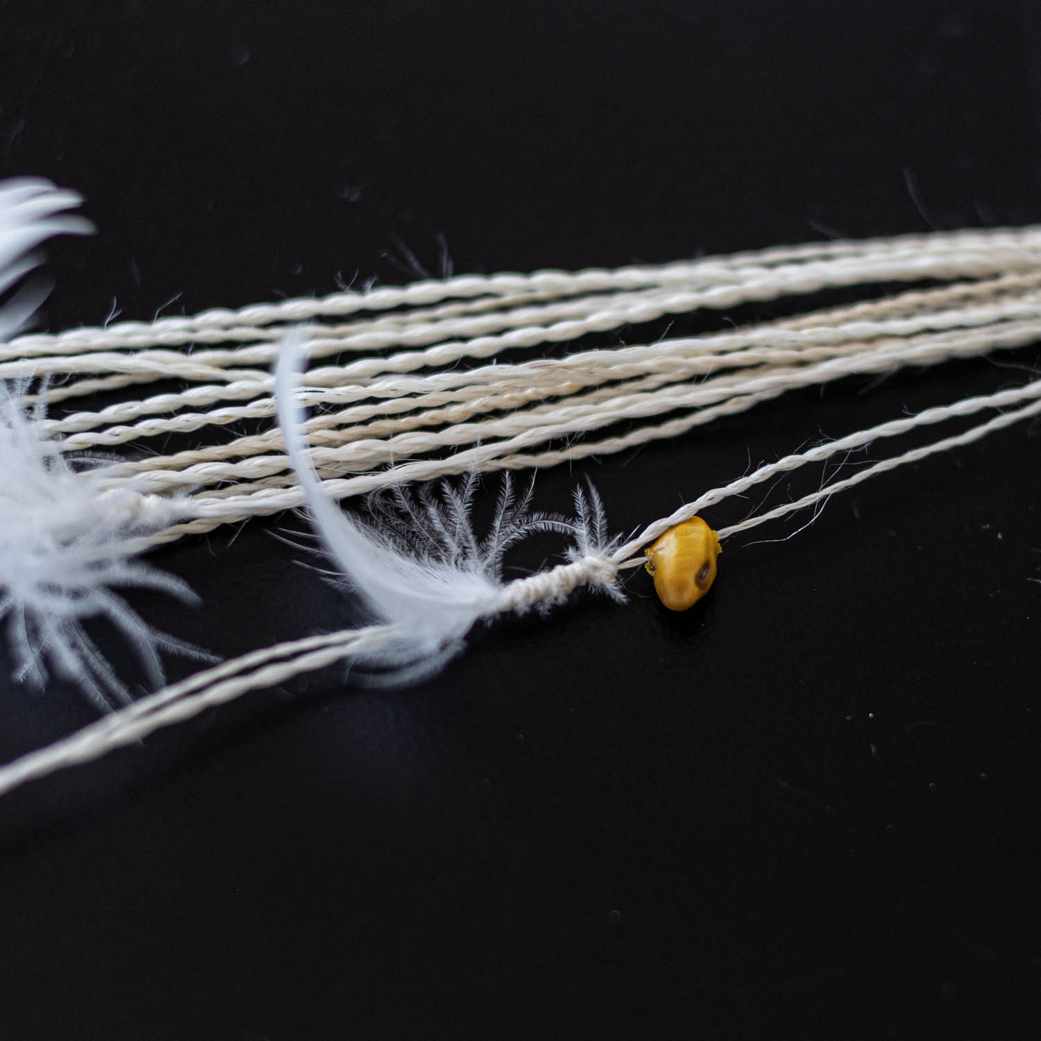 Materials: Muka Harakeke, Kōwhai seeds, Toroā, Sterling silver