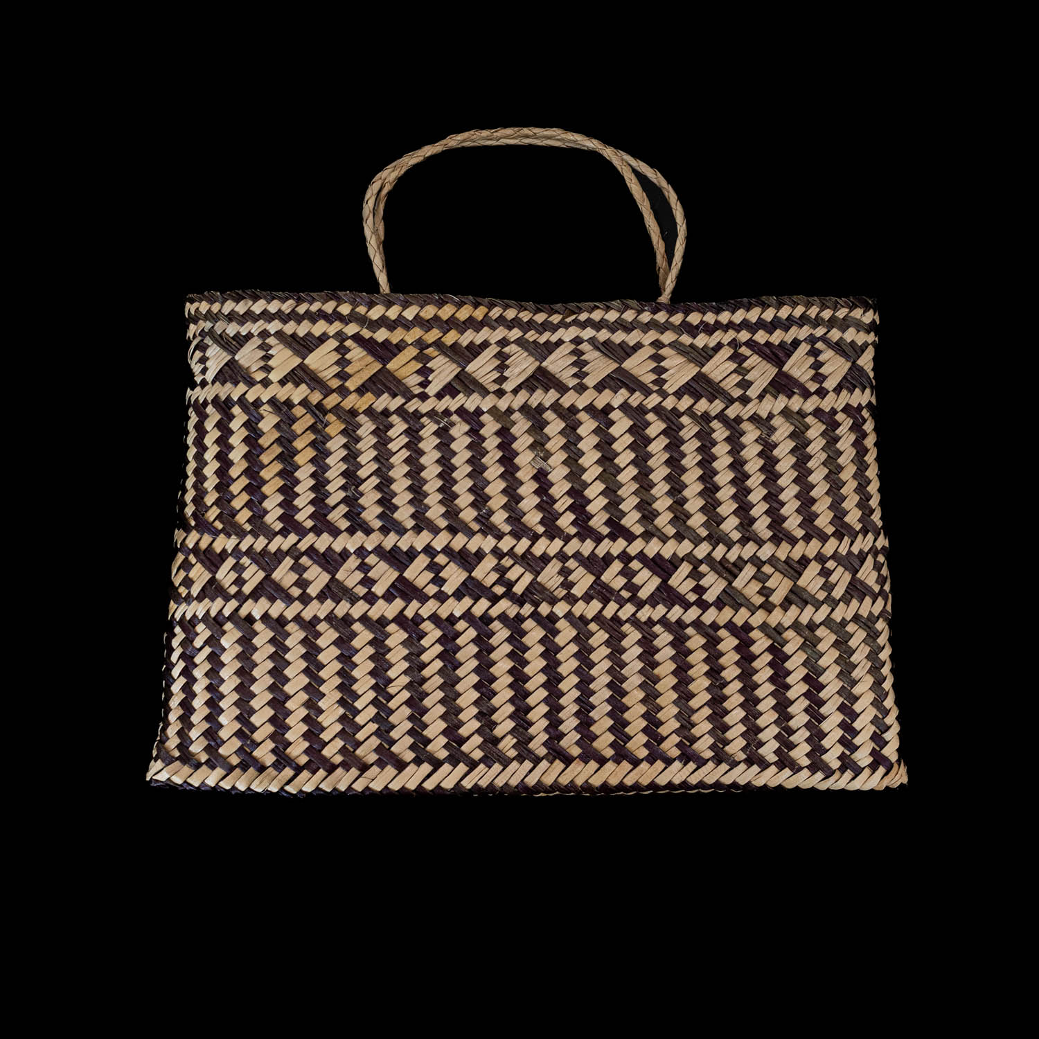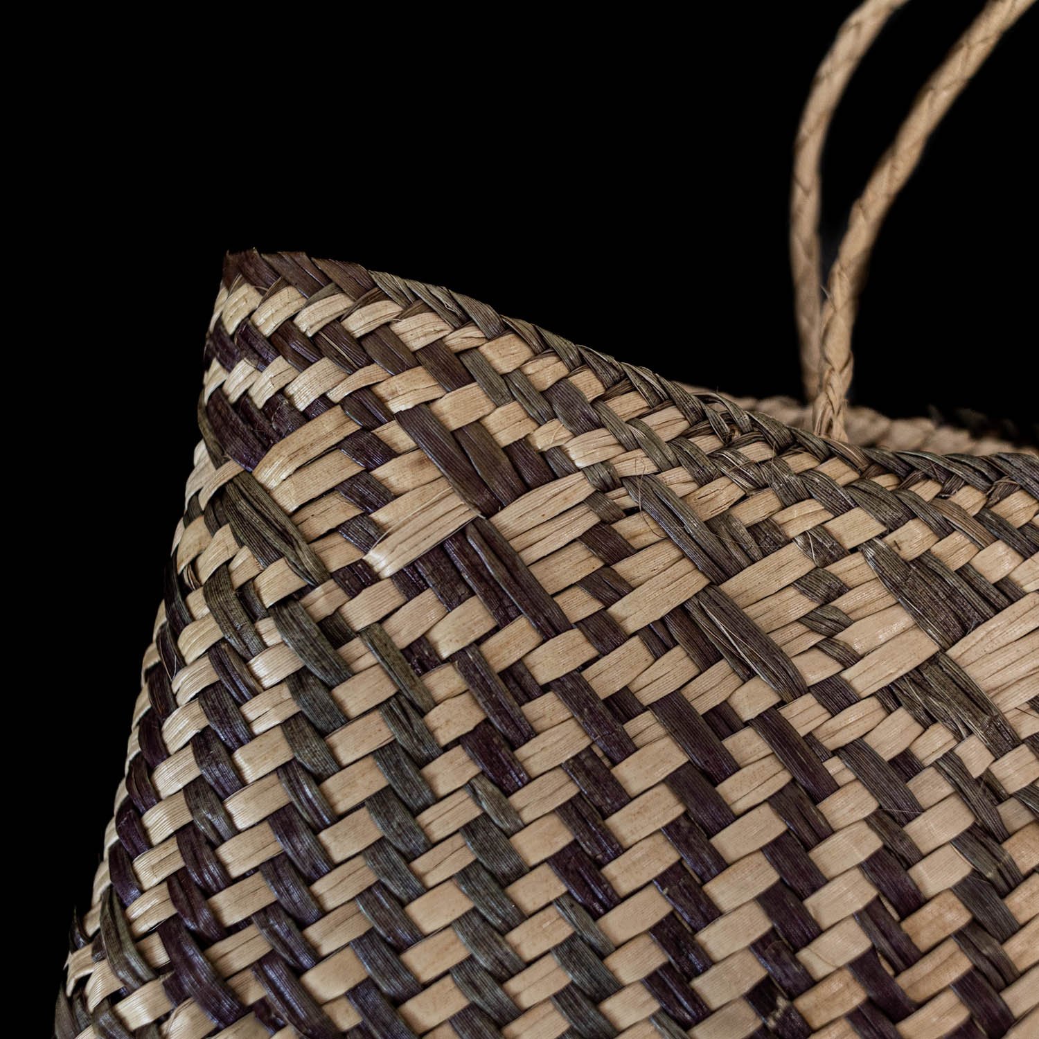 Woven by master weaver of the first Ngā Aho Whenua Weaver’s Residency in the Toi Matarau Gallery at Māoriland.Sonia’s kete collection is part of the ‘Te Ringā Māhorahora’ Exhibition, 2021.