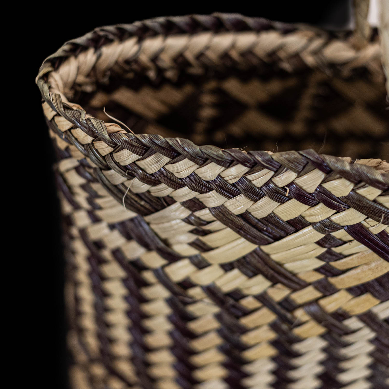 Woven by master weaver of the first Ngā Aho Whenua Weaver’s Residency in the Toi Matarau Gallery at Māoriland. Sonia’s kete collection is part of the ‘Te Ringā Māhorahora’ Exhibition, 2021.