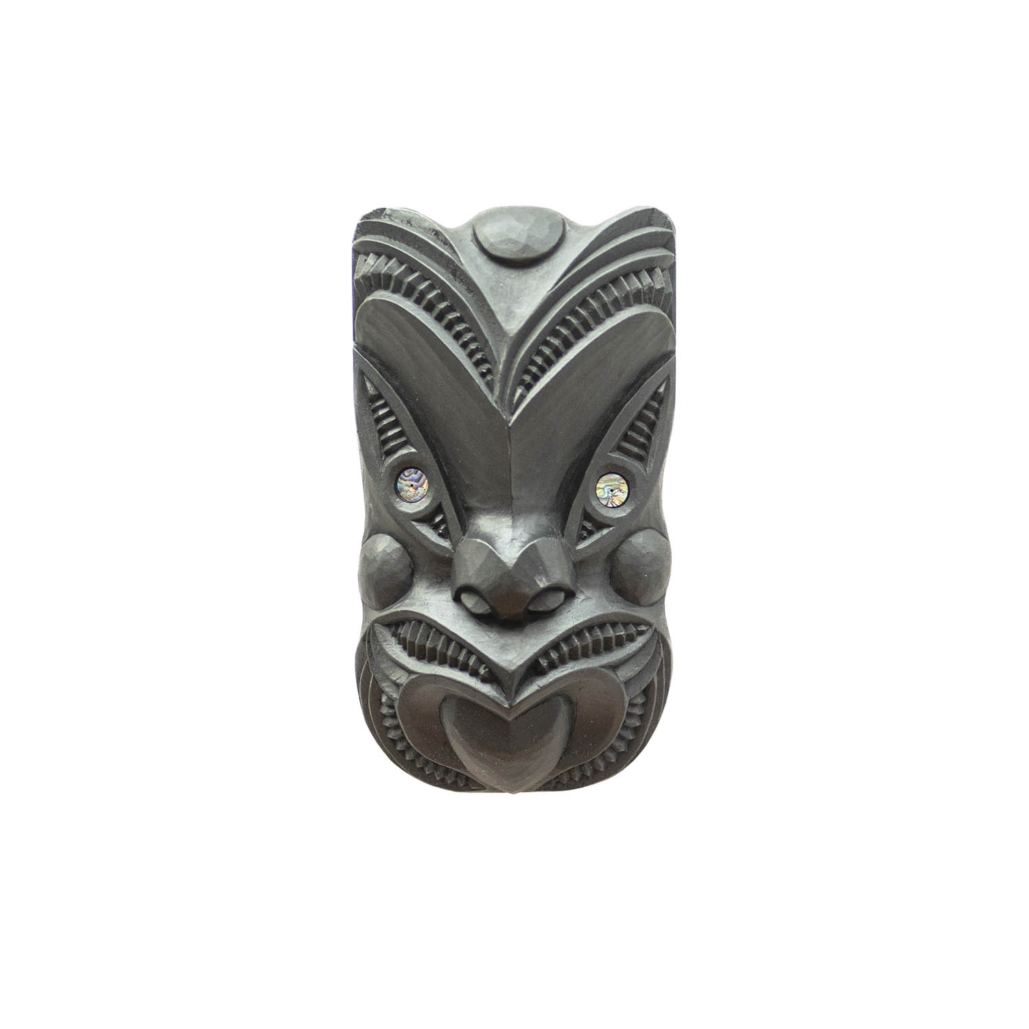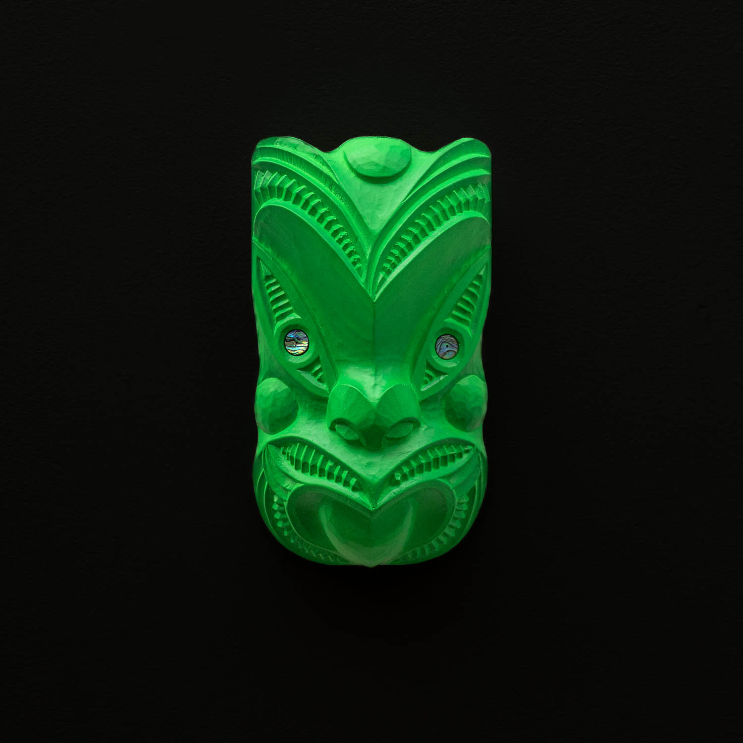 Messini Palace is a self-taught, experimental artist working primarily with resin and plaster. She is a self-sustainable practitioner who creates custom pieces from her studio in central Auckland. After living abroad for a long period, her decision to return home and pursue her art practice aided in her reconnection and reclamation of identity as a wāhine Māori. Some of her projects are collaborations with carver Mike Matchitt- while Matchitt carves into the original blueprint mould, Messini casts resin sculptures from the carved moulds to create a final piece. A selection of Messini’s sculptures is inspired by souvenir pieces of the mid-century era, such as the tiki. This is her way of counter-critiquing trinkets sold to tourists, reclaiming the narrative of taonga tuku iho. Messini’s greatest influence is her whakapapa; many of her pieces represent important tūpuna or kaitiaki.