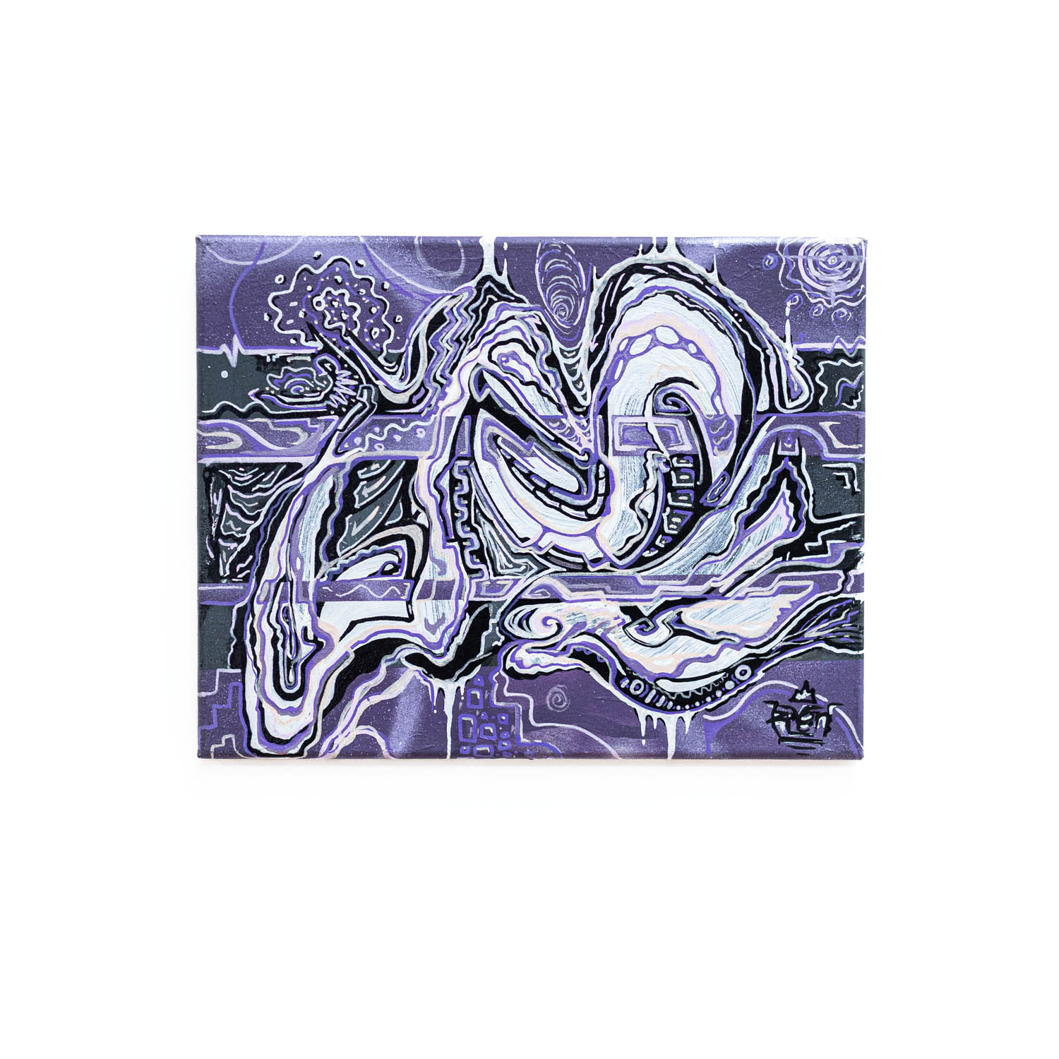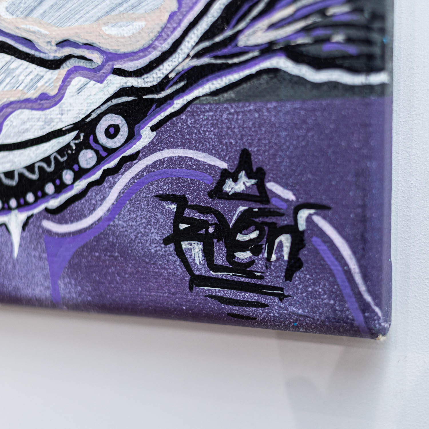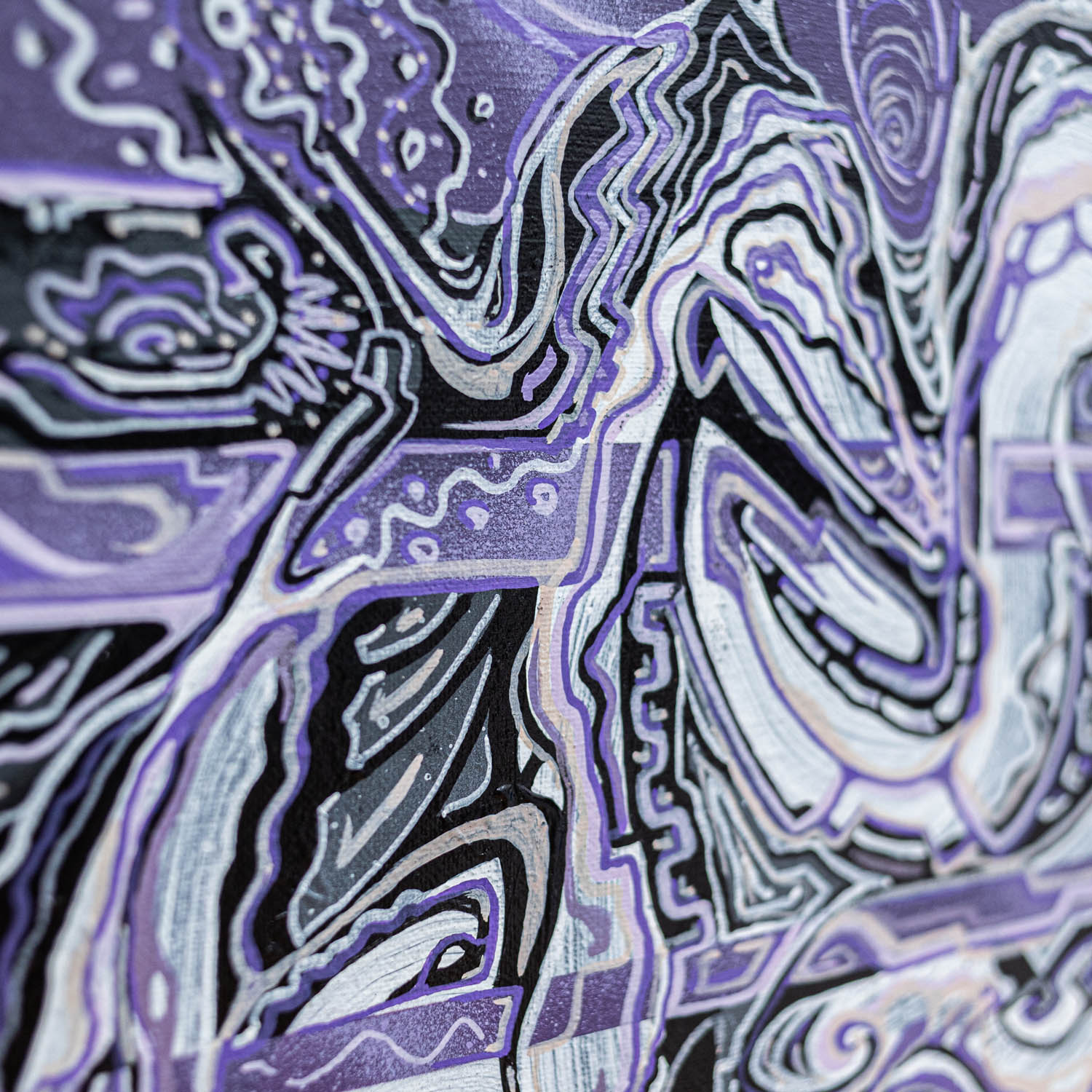 Description: Custom spray paint, paint pen, acrylic on canvas.