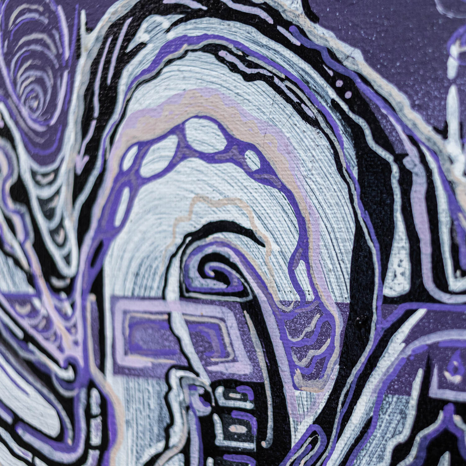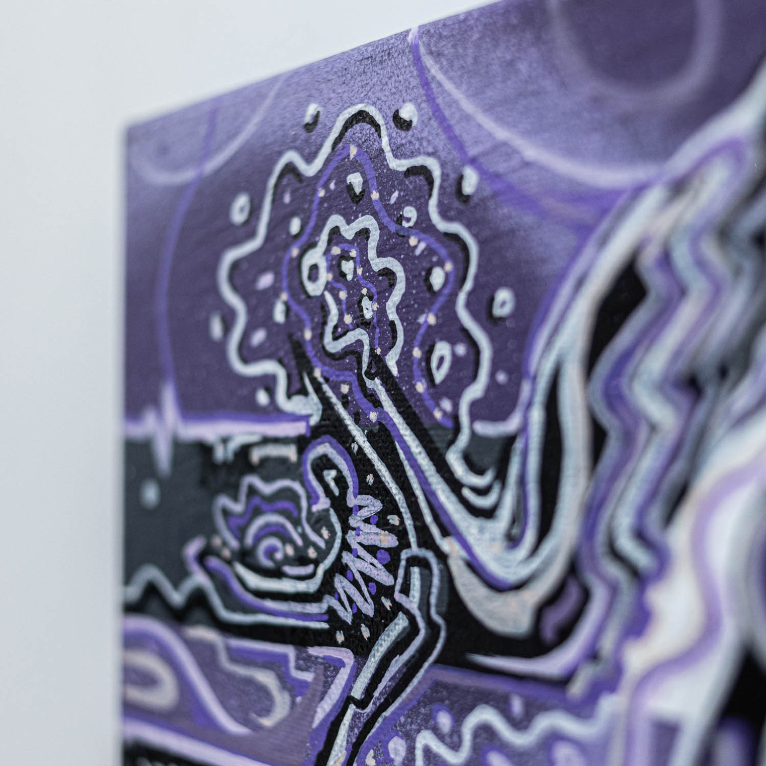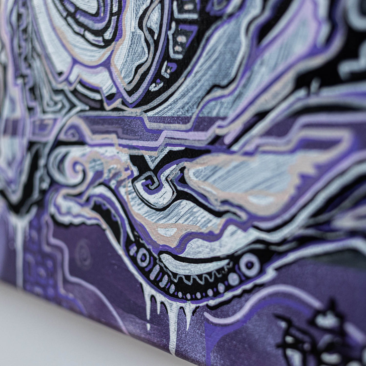 Description: Custom spray paint, paint pen, acrylic on canvas.
